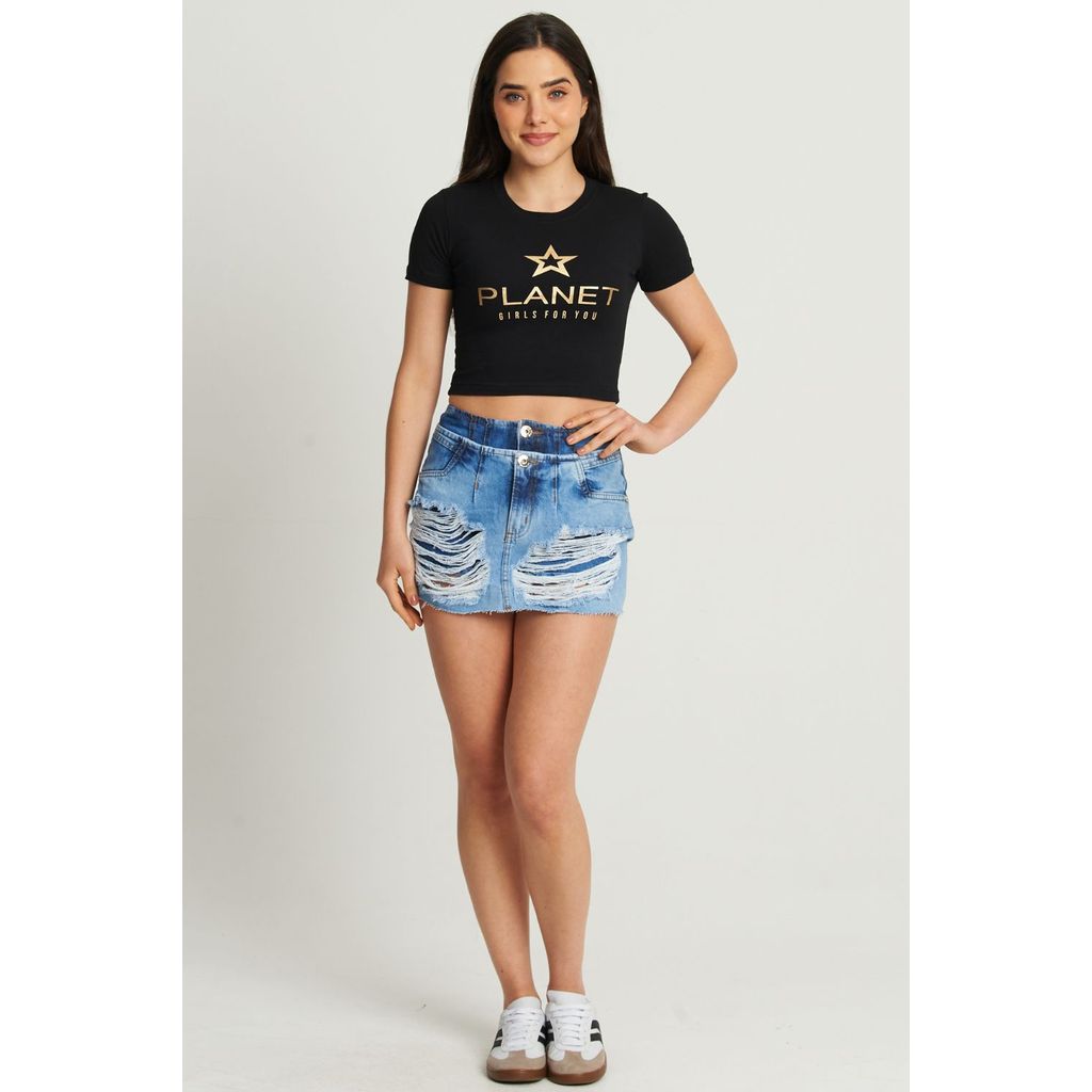 Cropped Feminino Logo Star Planet Girls Preto