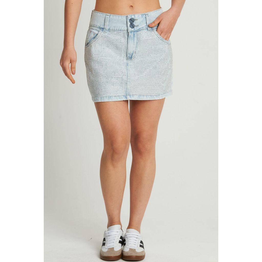 Saia Curta Com Strass Planet Girls Jeans Claro
