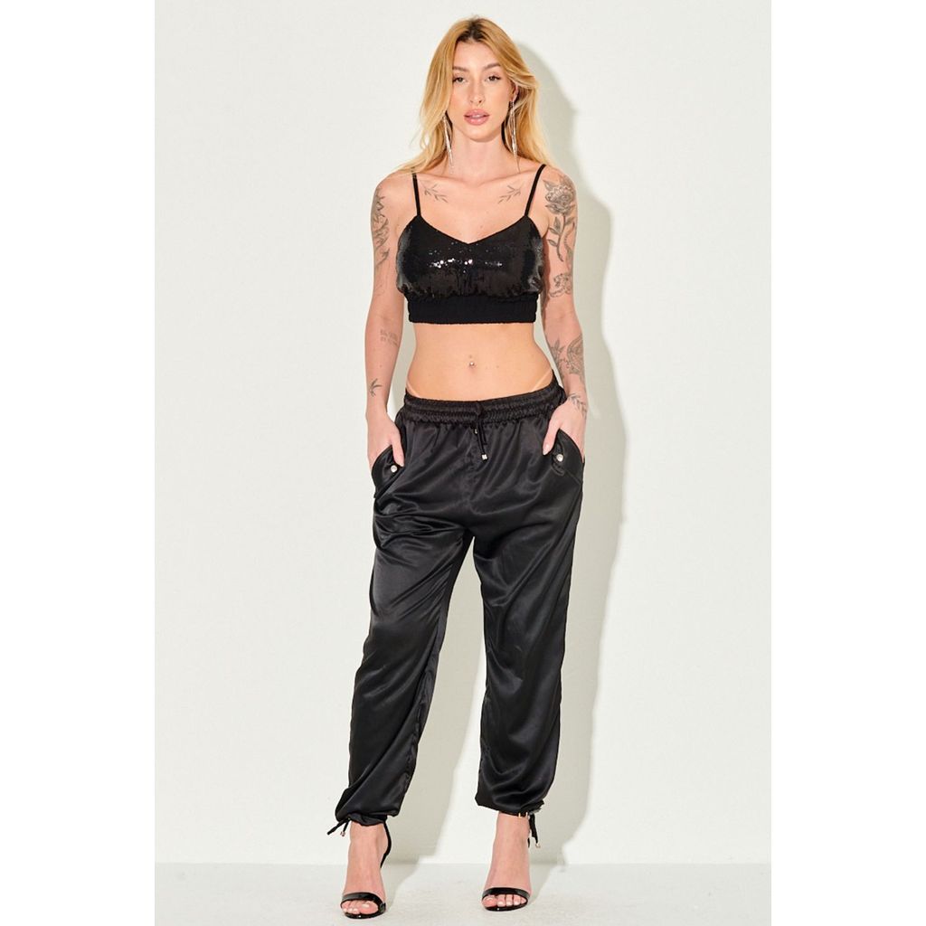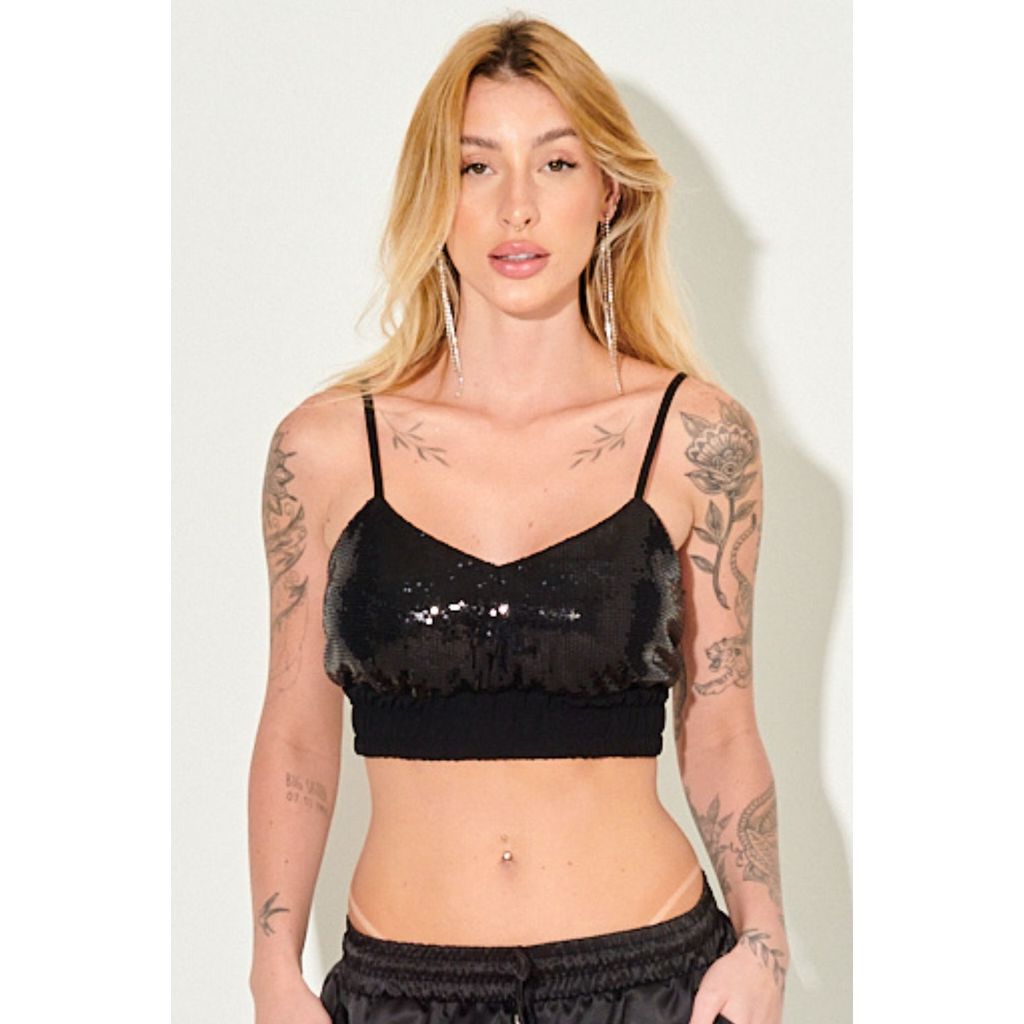 Top Paetê Ross Alcinha Fina Planet Girls Preto