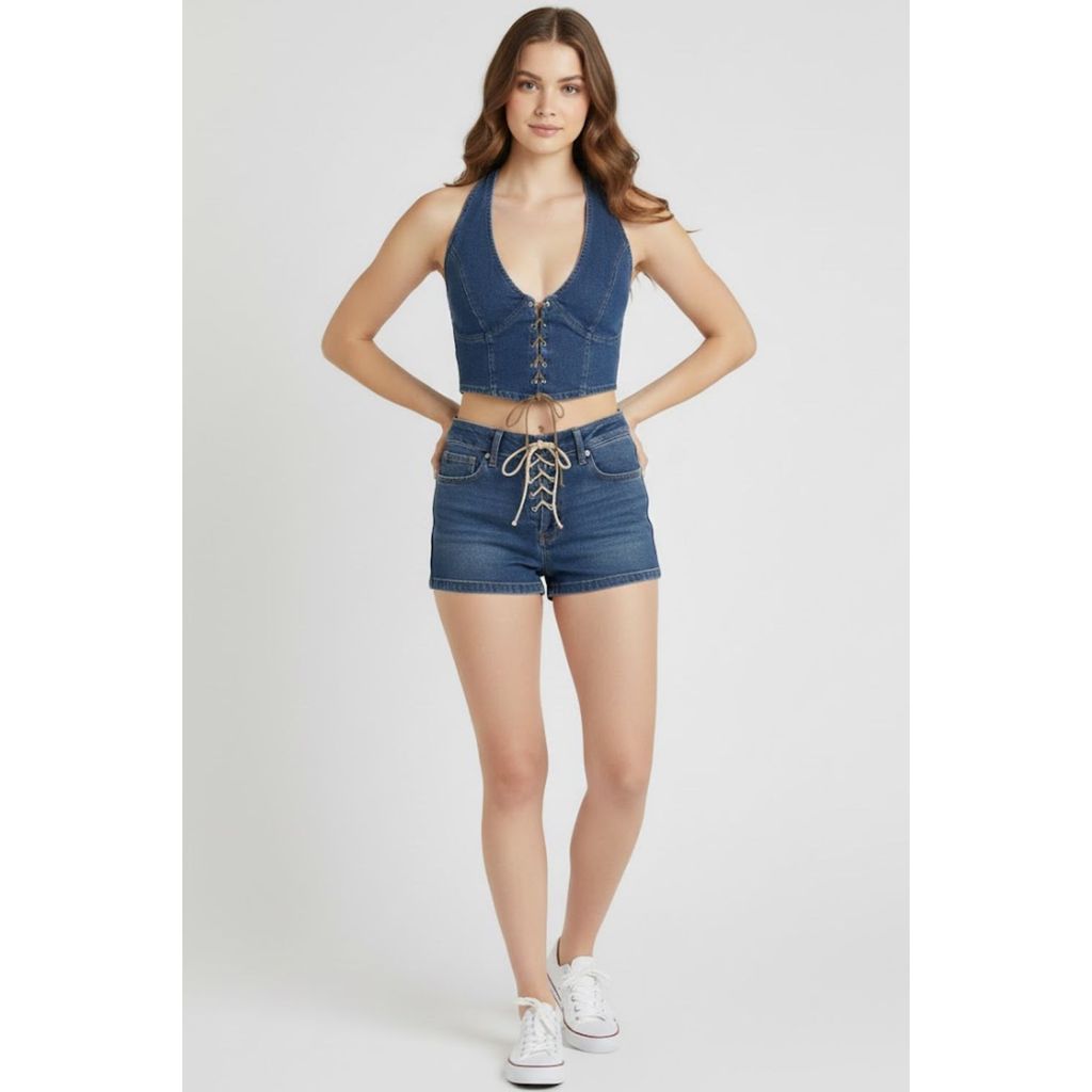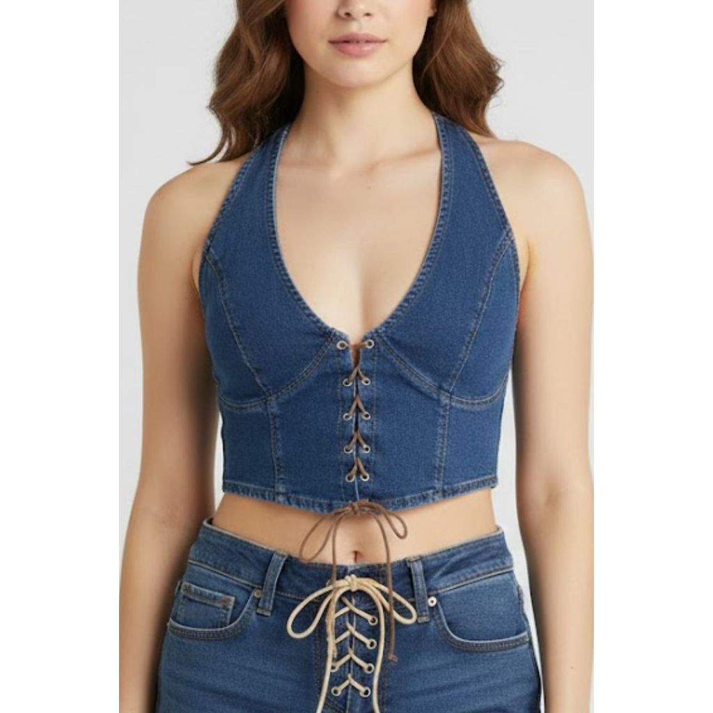 Top Cropped Feminino Com Amarração Planet Girls Jeans Escuro