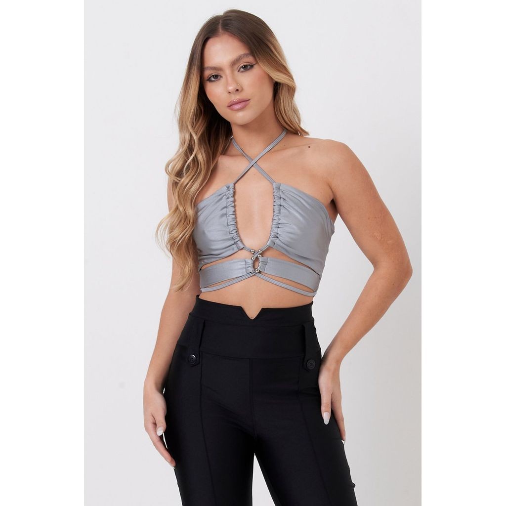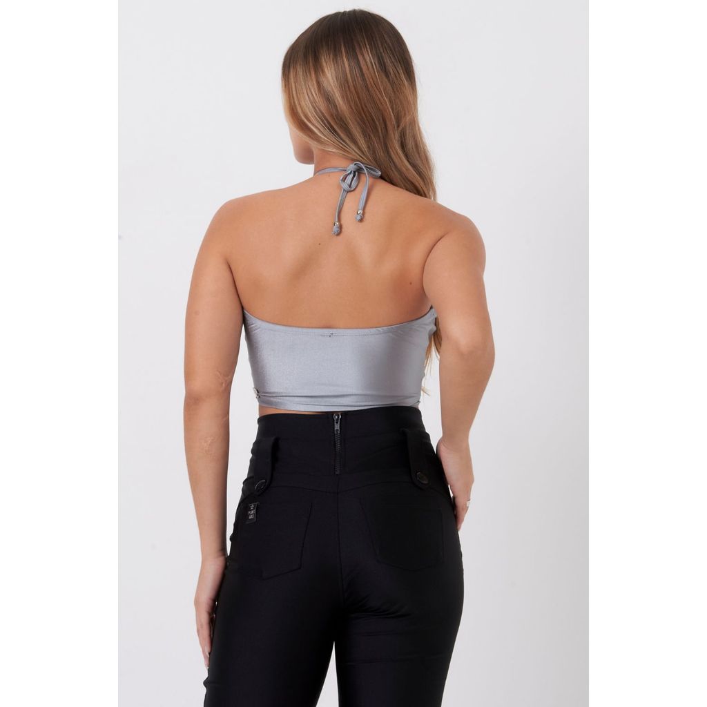 Top Feminino Up Glam Com Ponteiras Planet Girls Cinza Médio