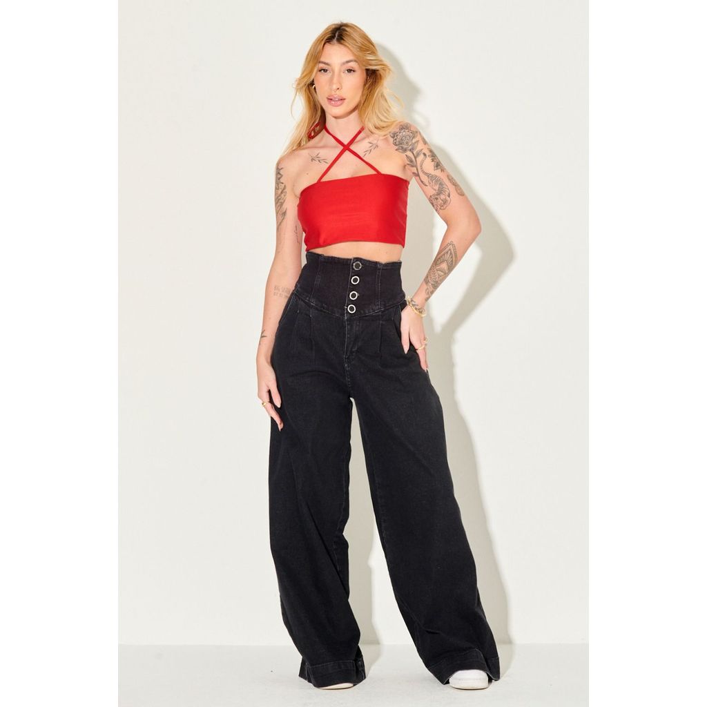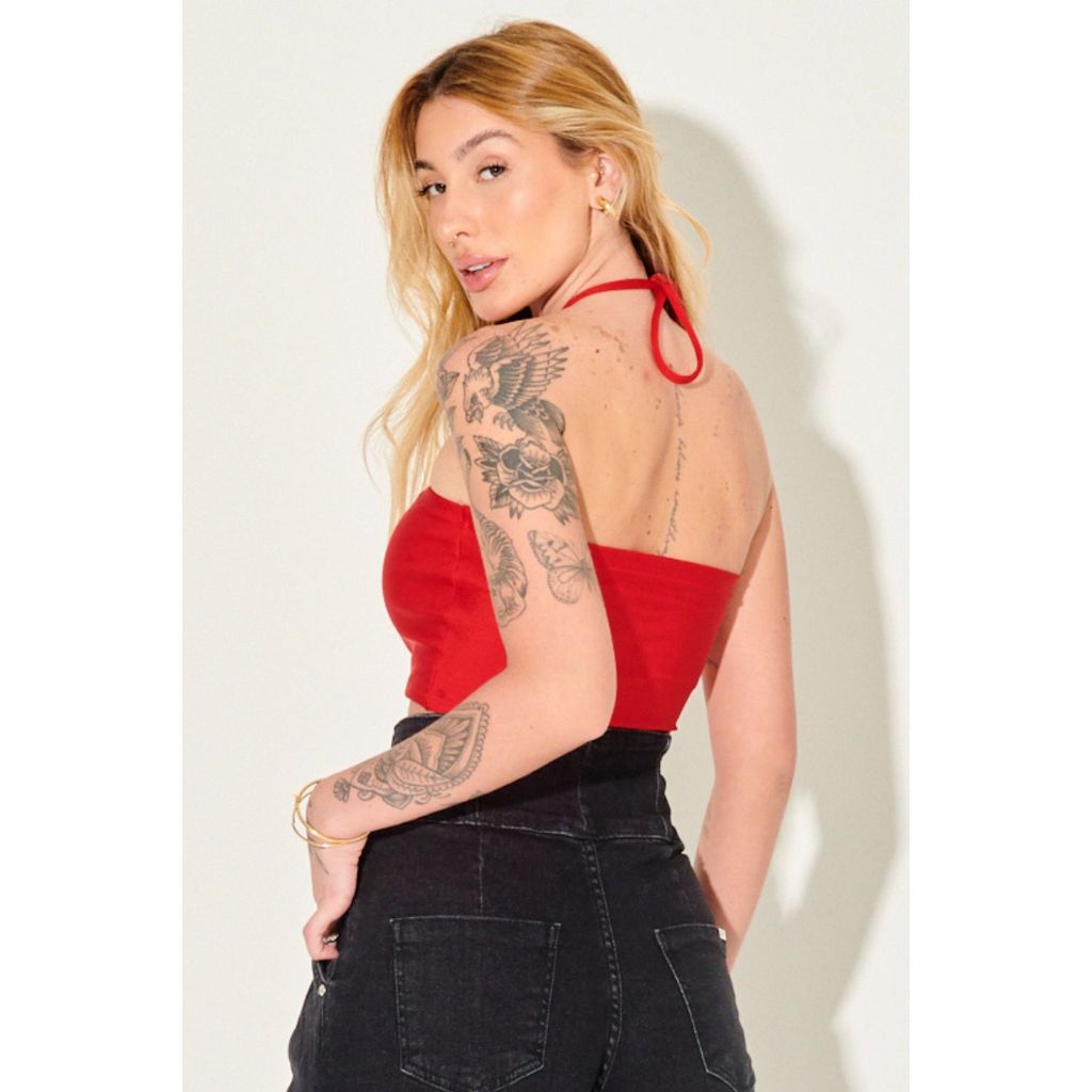 Top Faixa Up Glam Liso Amarração Planet Girls Vermelho Médio