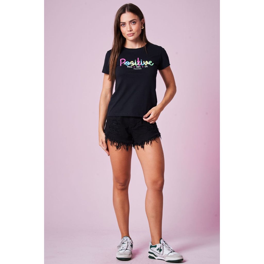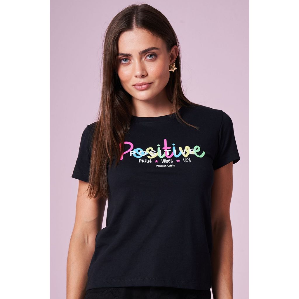 Camiseta Feminina Estampa Positive Planet Girls Preto