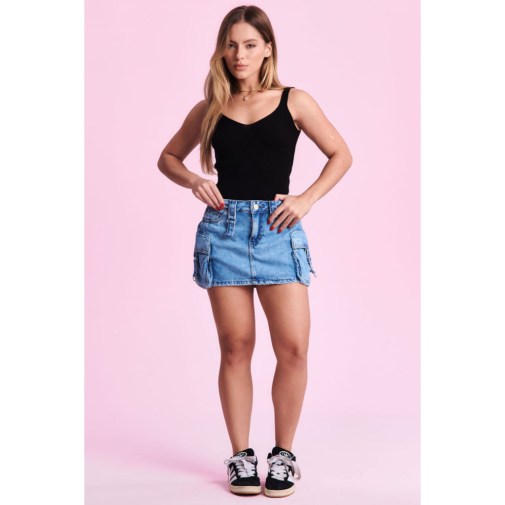 Saia Curta Jeans Cargo Fivelas Planet Girls Jeans Claro