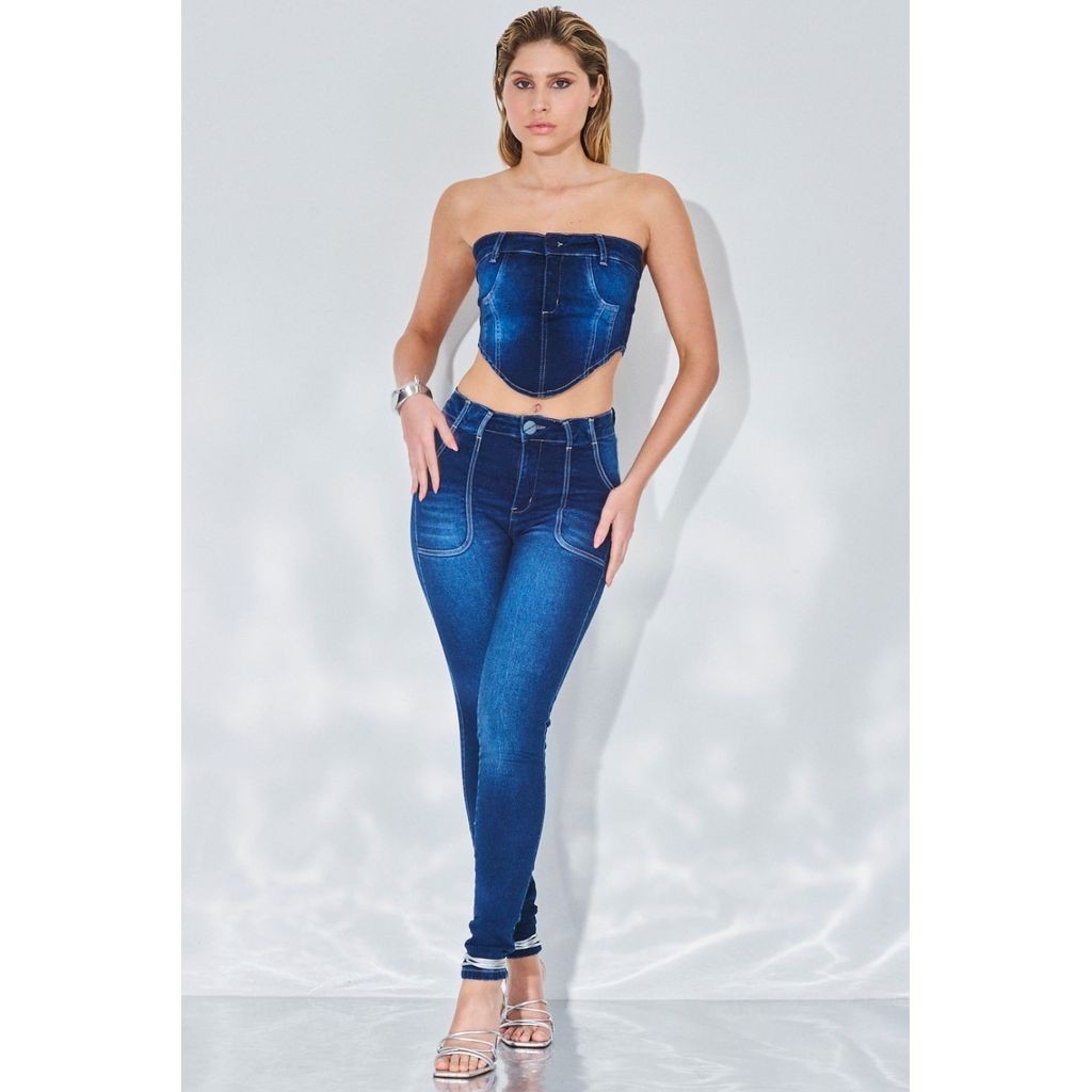 Calça Feminina Hydra Jeans Skinny Bolso Amplo Planet Girls Jeans Escuro