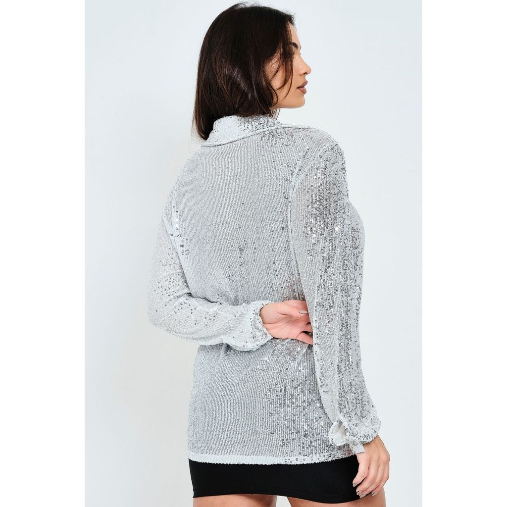 Camisa Feminina Social Paetê Planet Girls Prata