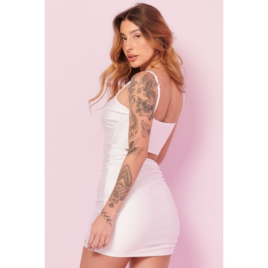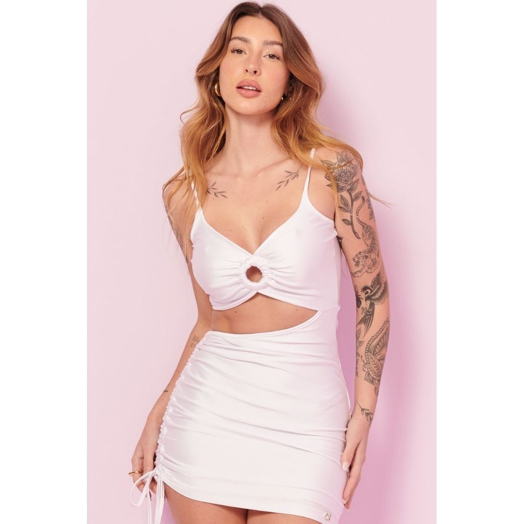 Vestido Curto Argola Frontal e Franzido Lateral Planet Girls Branco