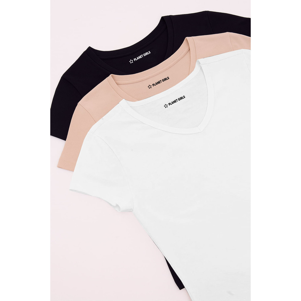 Kit 3 Camisetas Femininas Decote v Planet Girls Sortido