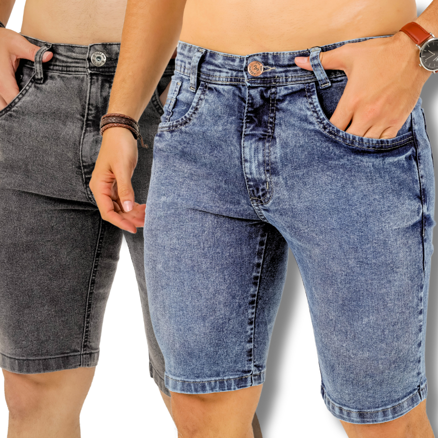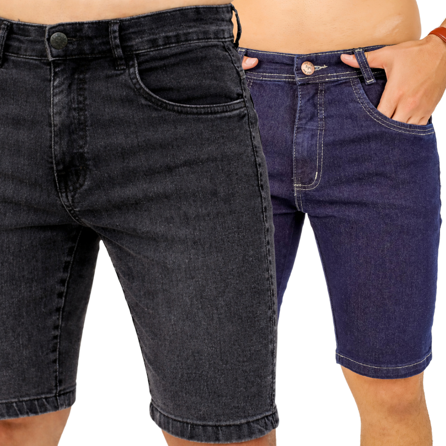 Kit de Bermudas Jeans - 2 peças - Bermuda Jeans Com Lycra Dia a dia - Envio Imediato