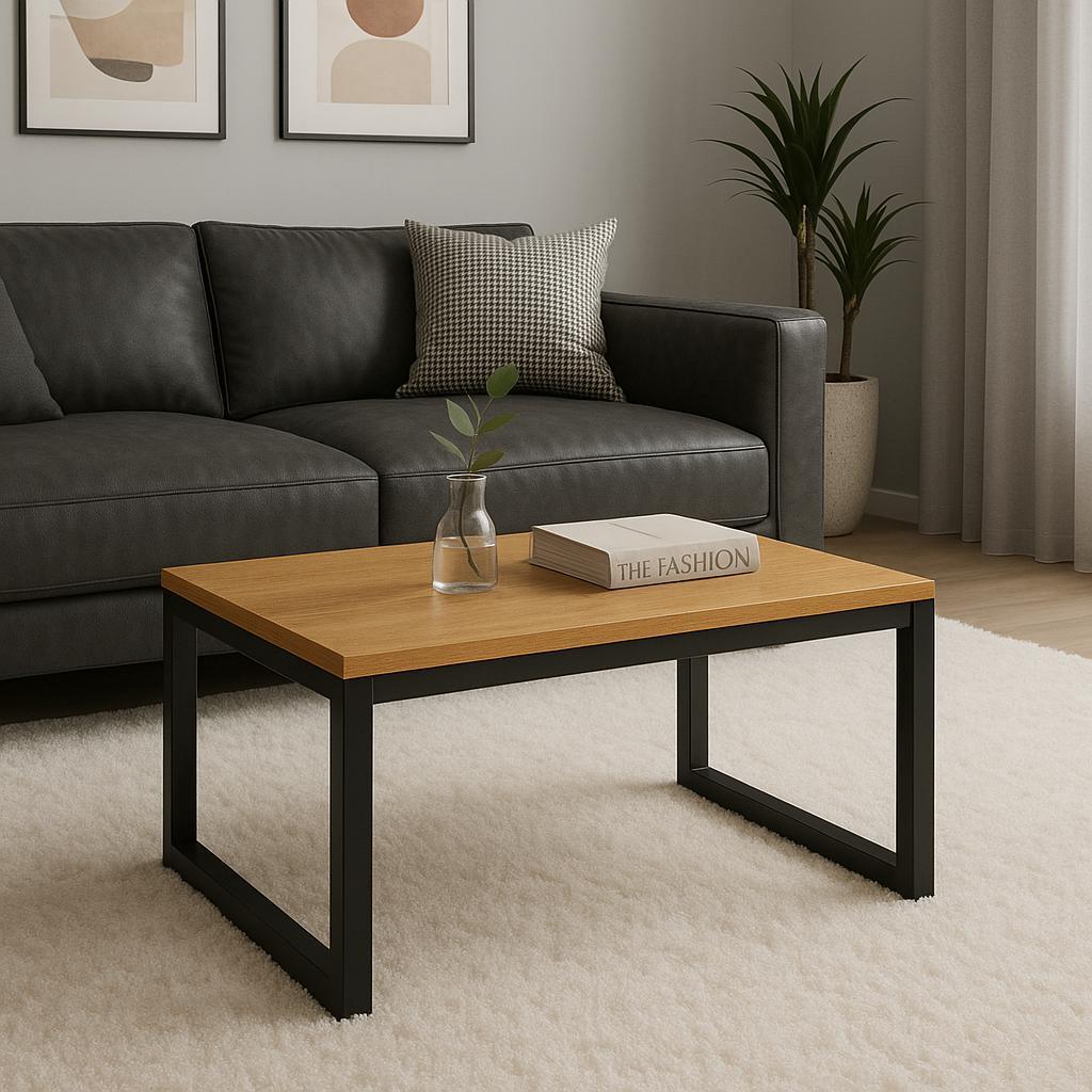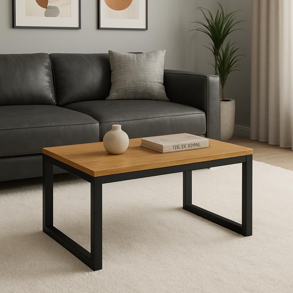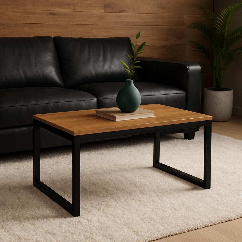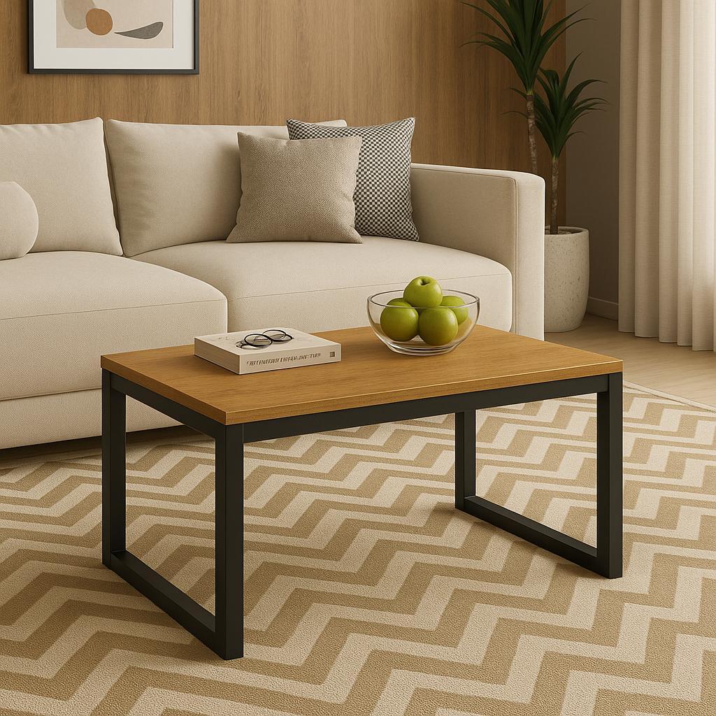 Mesa De Centro Sala Industrial Ferro E Madeira Retangular BEST