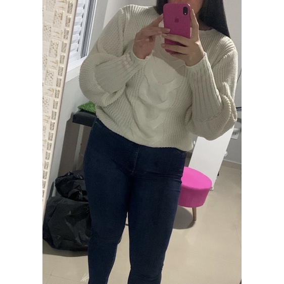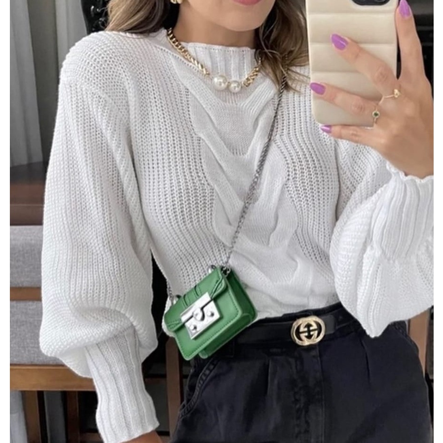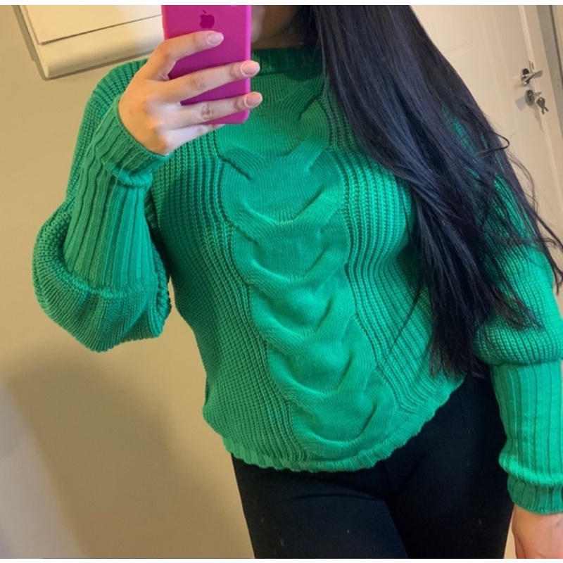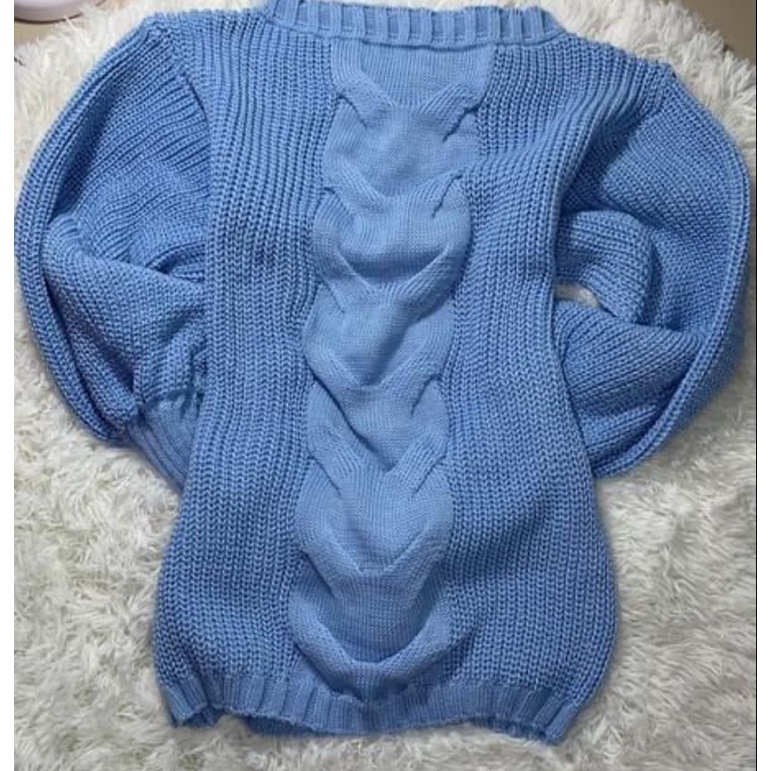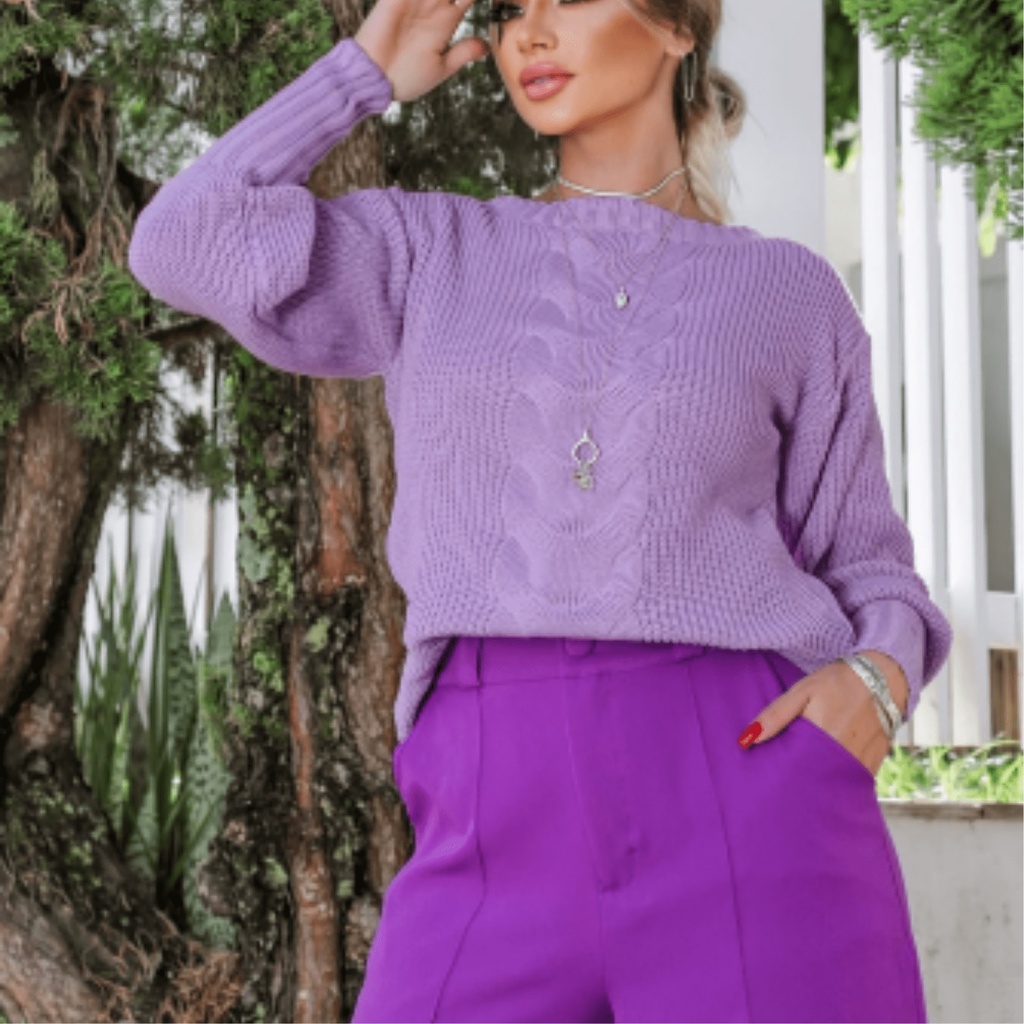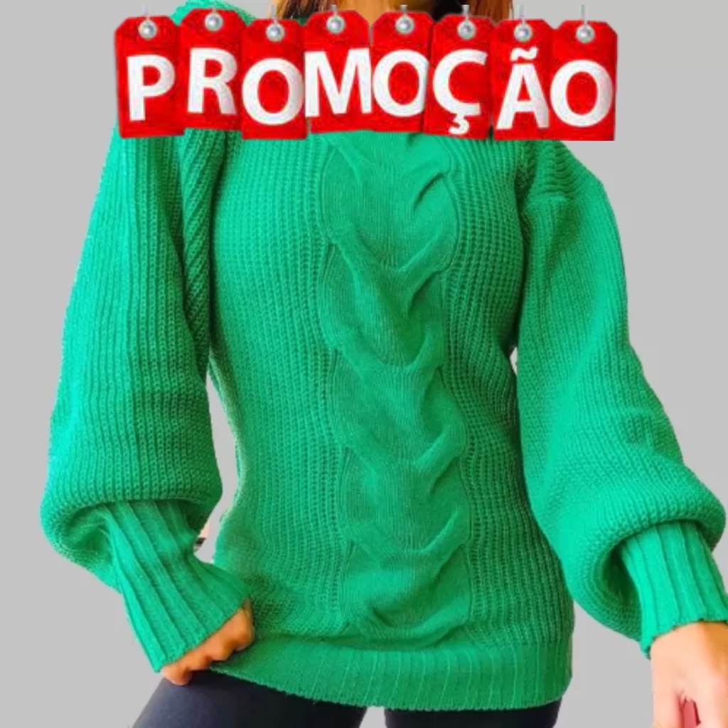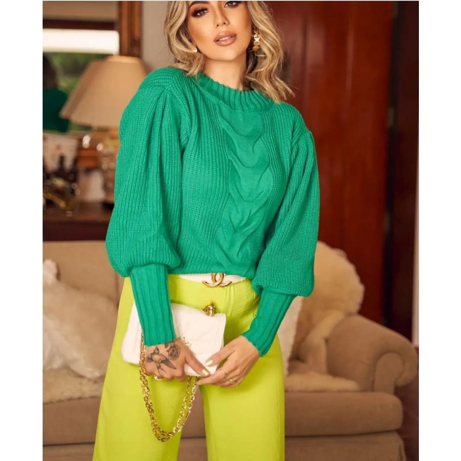 Blusa Feminina Tricot Manga Longa Com Uma Trança Central Inverno Blusão de Trico Promoção