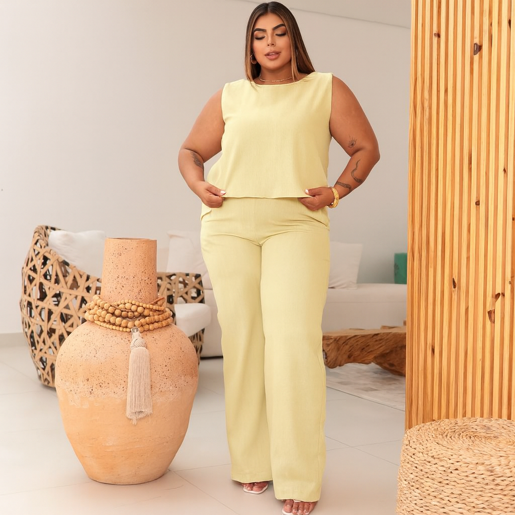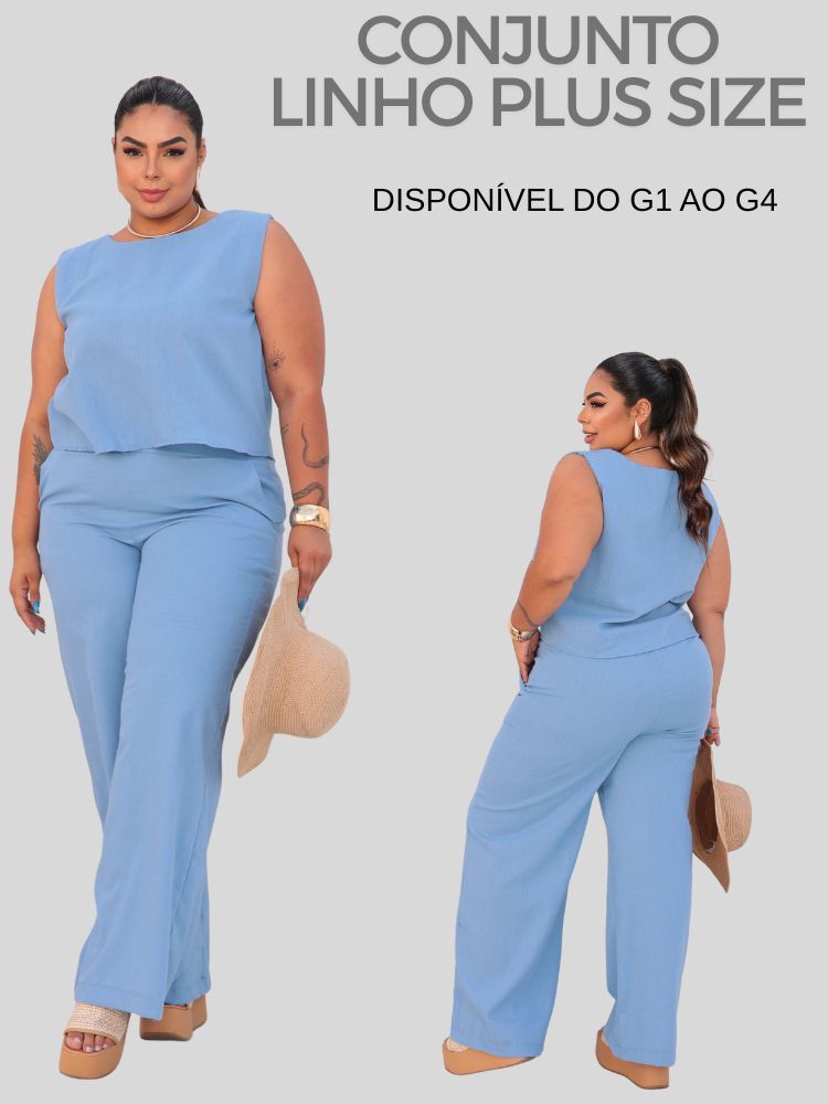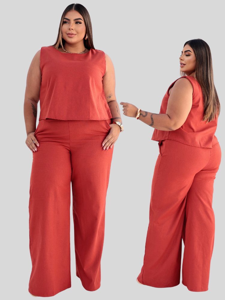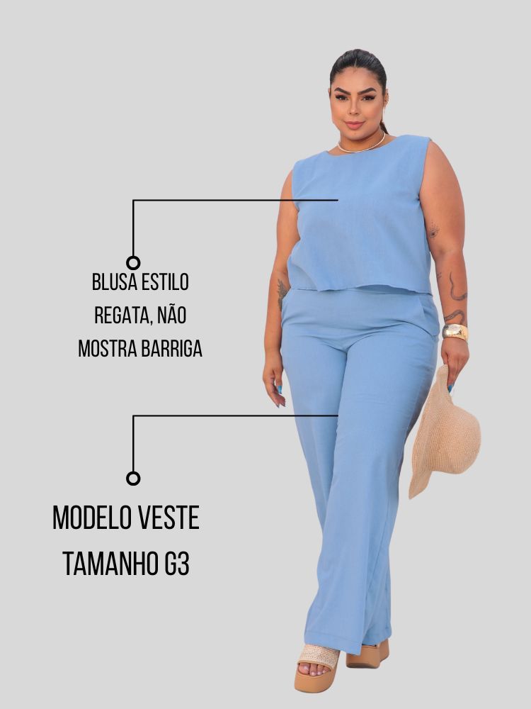 Conjunto Feminino Plus Size Blusa e Calça Alfaiataria G1 G2 G3