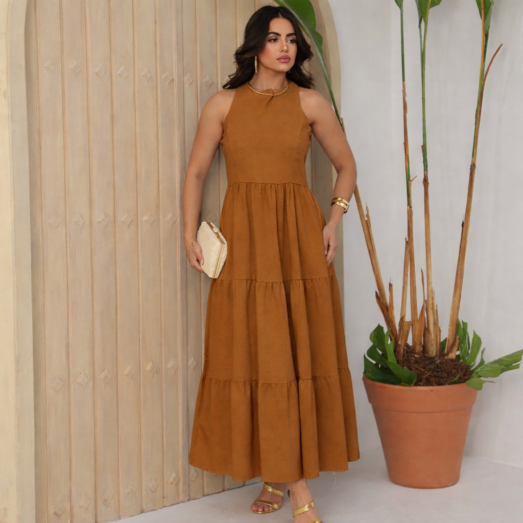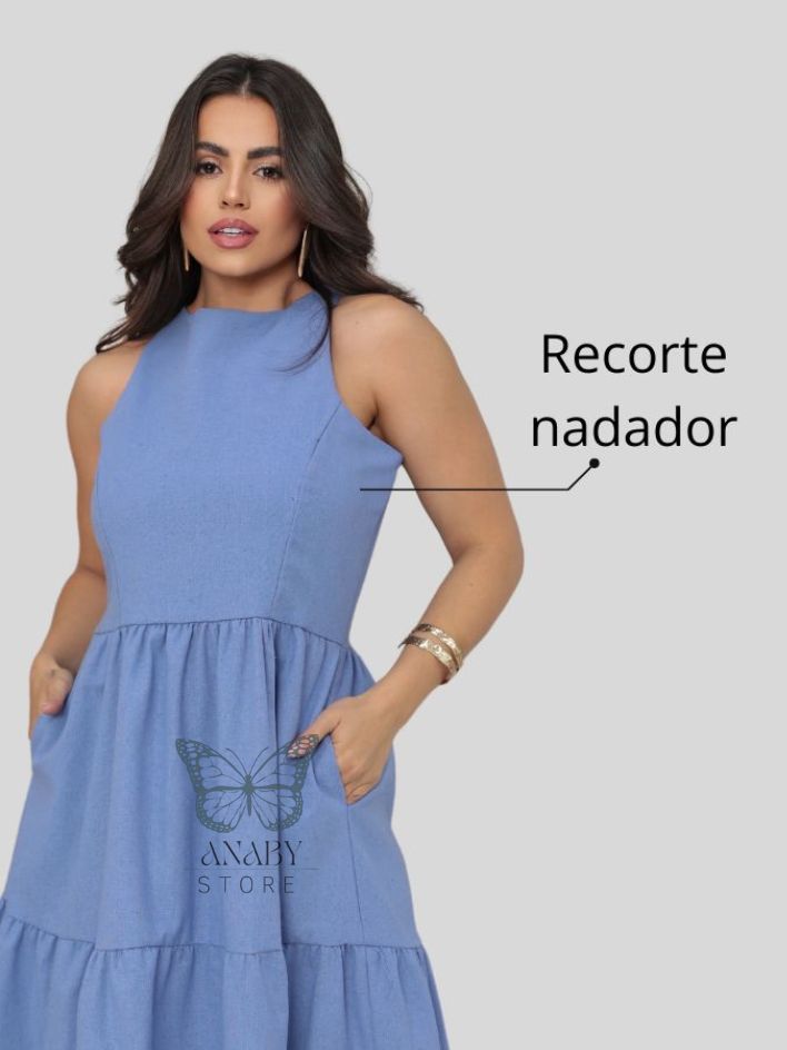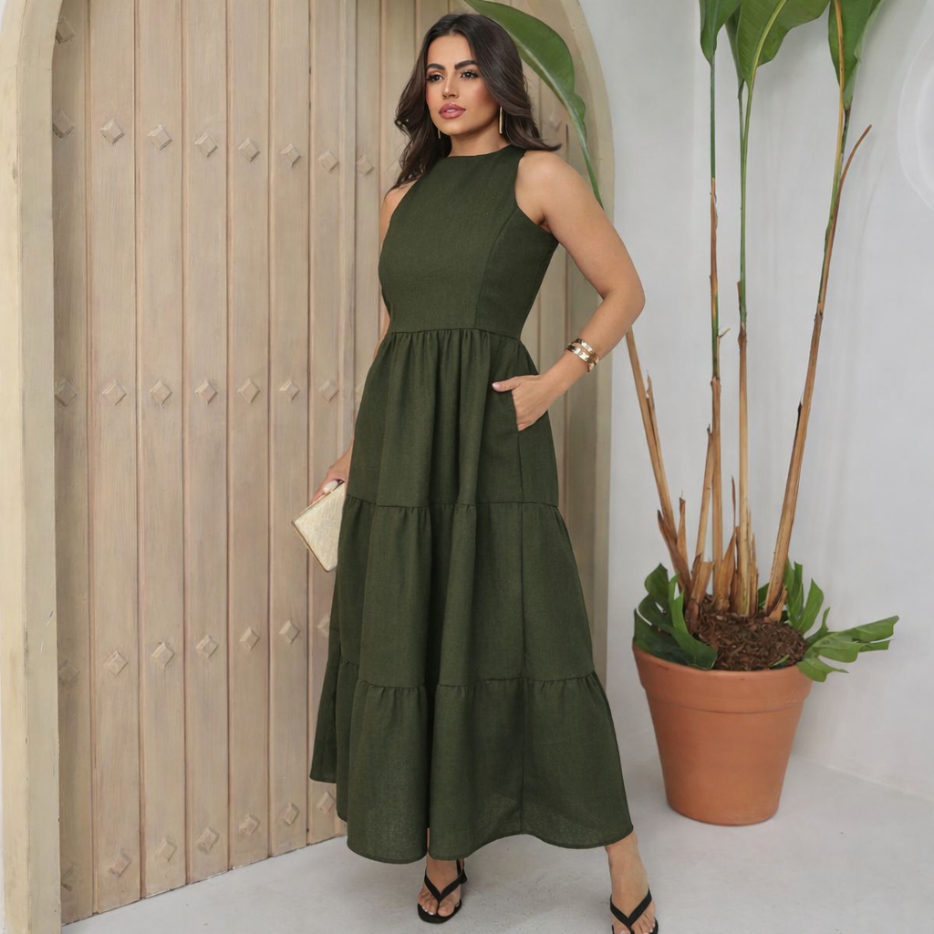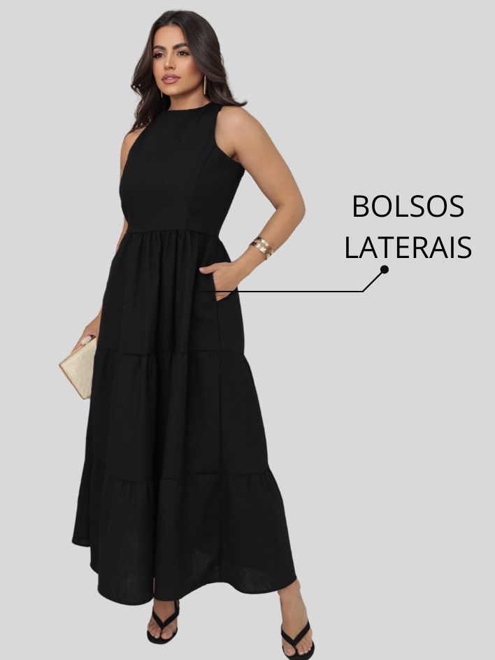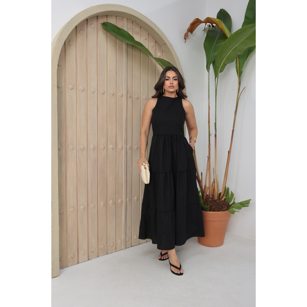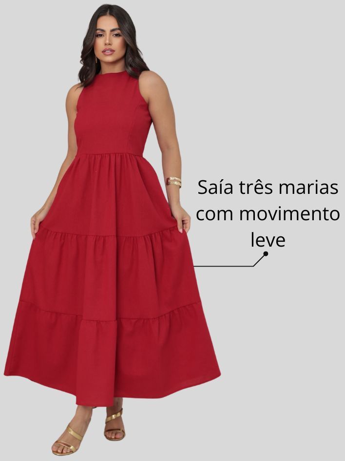Vestido Feminino Sem Manga Midi Elegante Soltinho Casual Festa Linho Premium