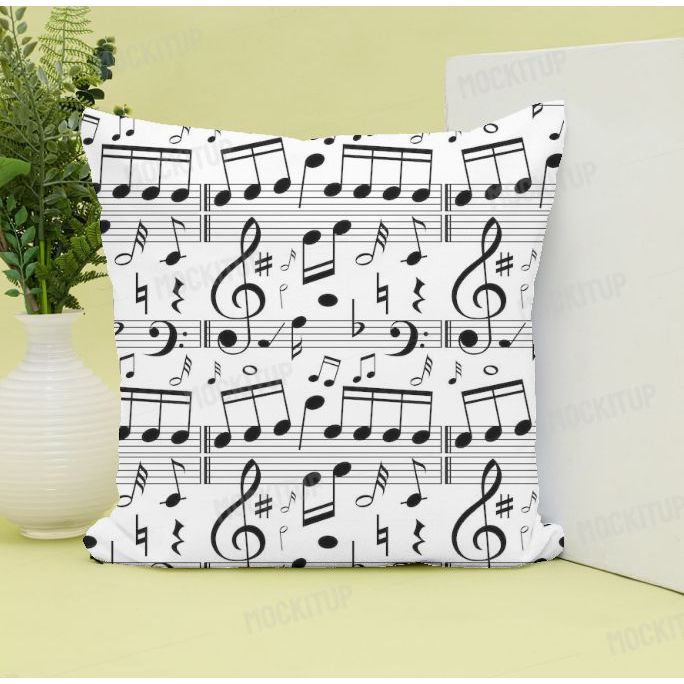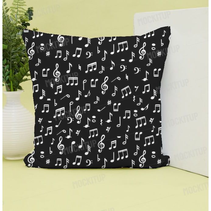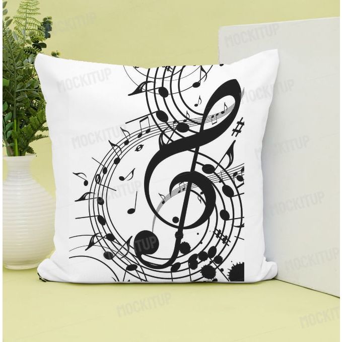 Capa de Almofada Notas Musicais decoração e presentes tecido oxford 45x45 com ziper