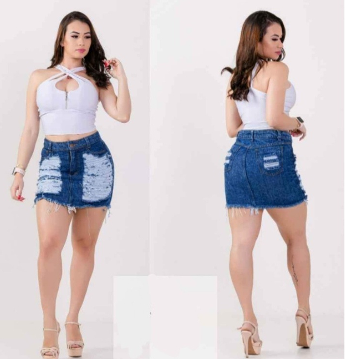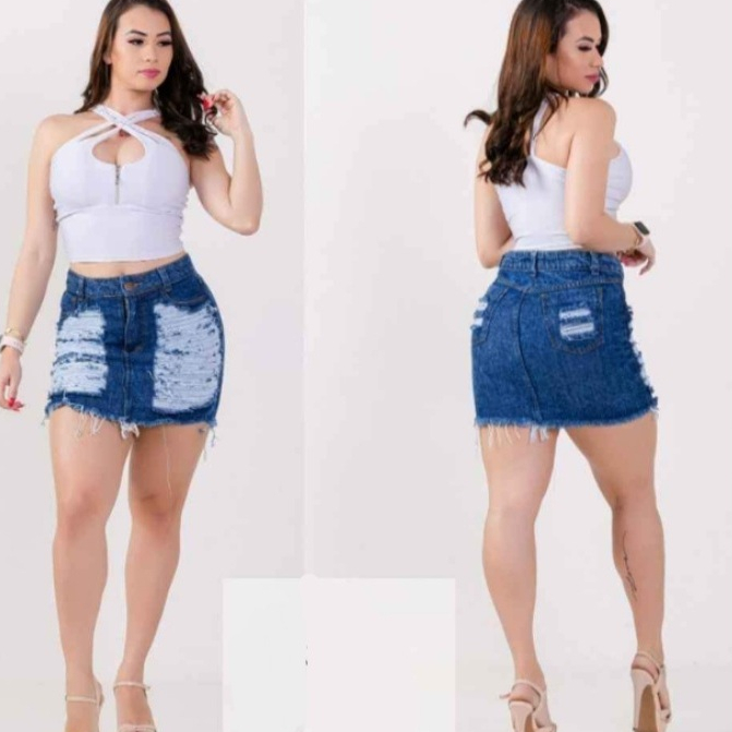 Saia Jeans Feminina Destroyed Desfiado Na Perna Moda Blogueira Ultima Moda Super Oferta