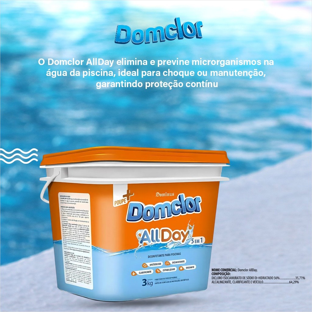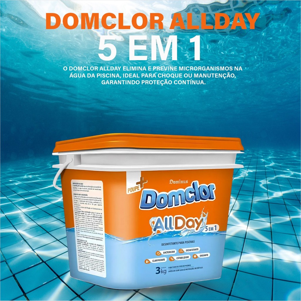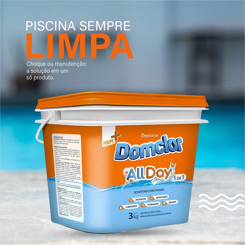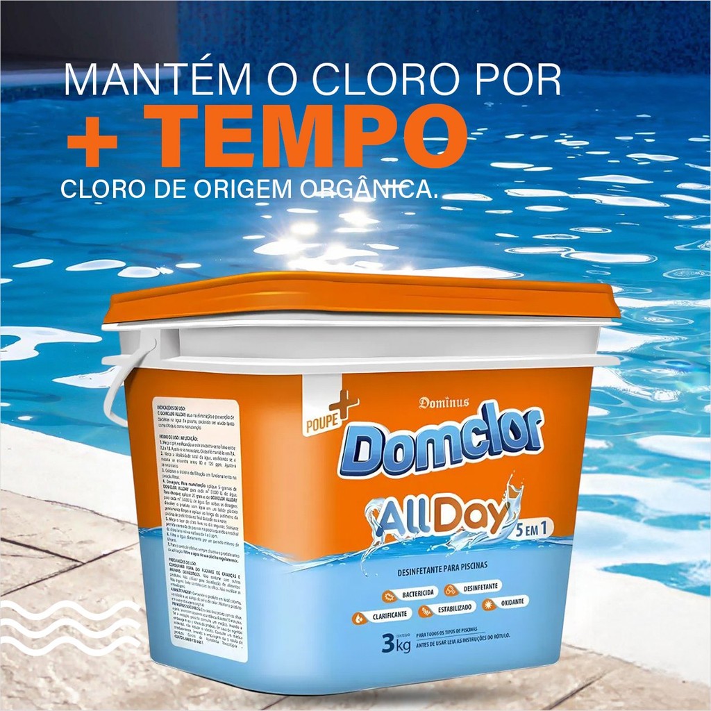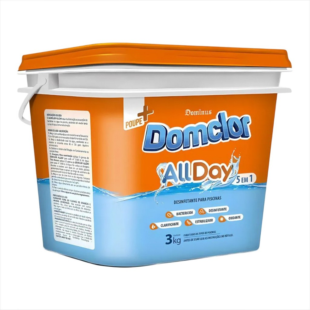 Balde De Cloro 1Kg e 3Kg Para Limpeza E Manutenção Para Piscina Domclor Allday
