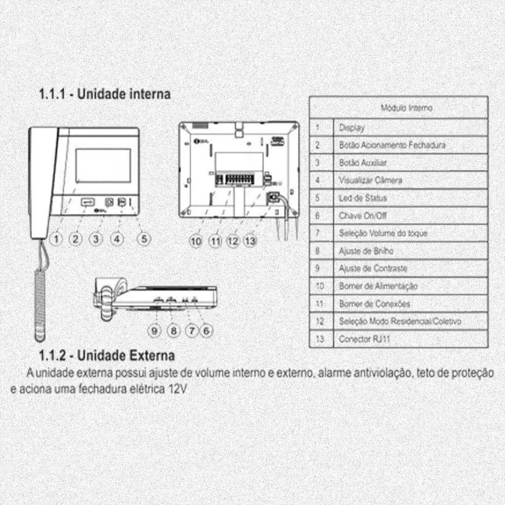 Interfone Com Câmera 1 Ponto HDL Class Vídeo Porteiro Eletrônico