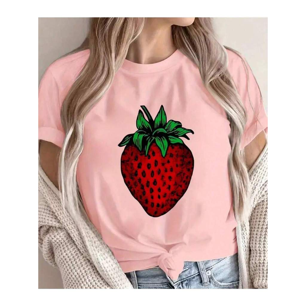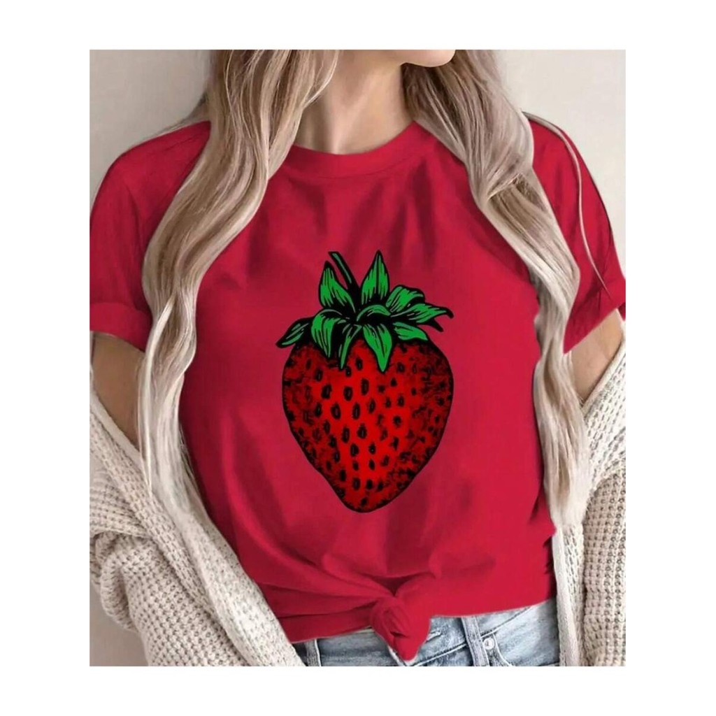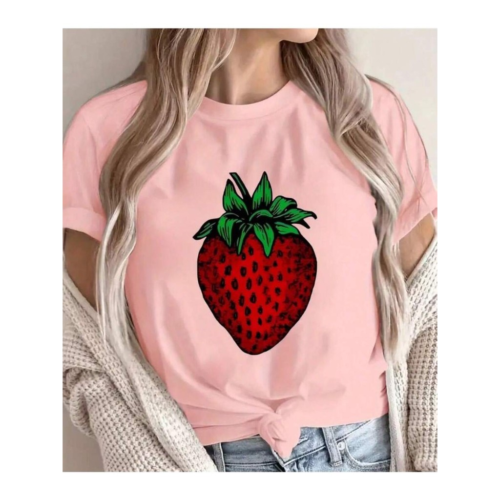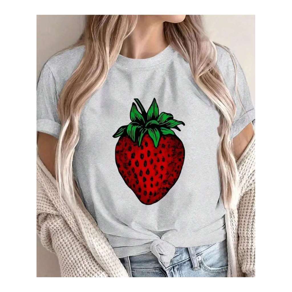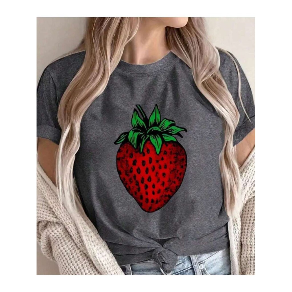 Camiseta Feminina t shirt morango Super Estilosa 100% Algodão