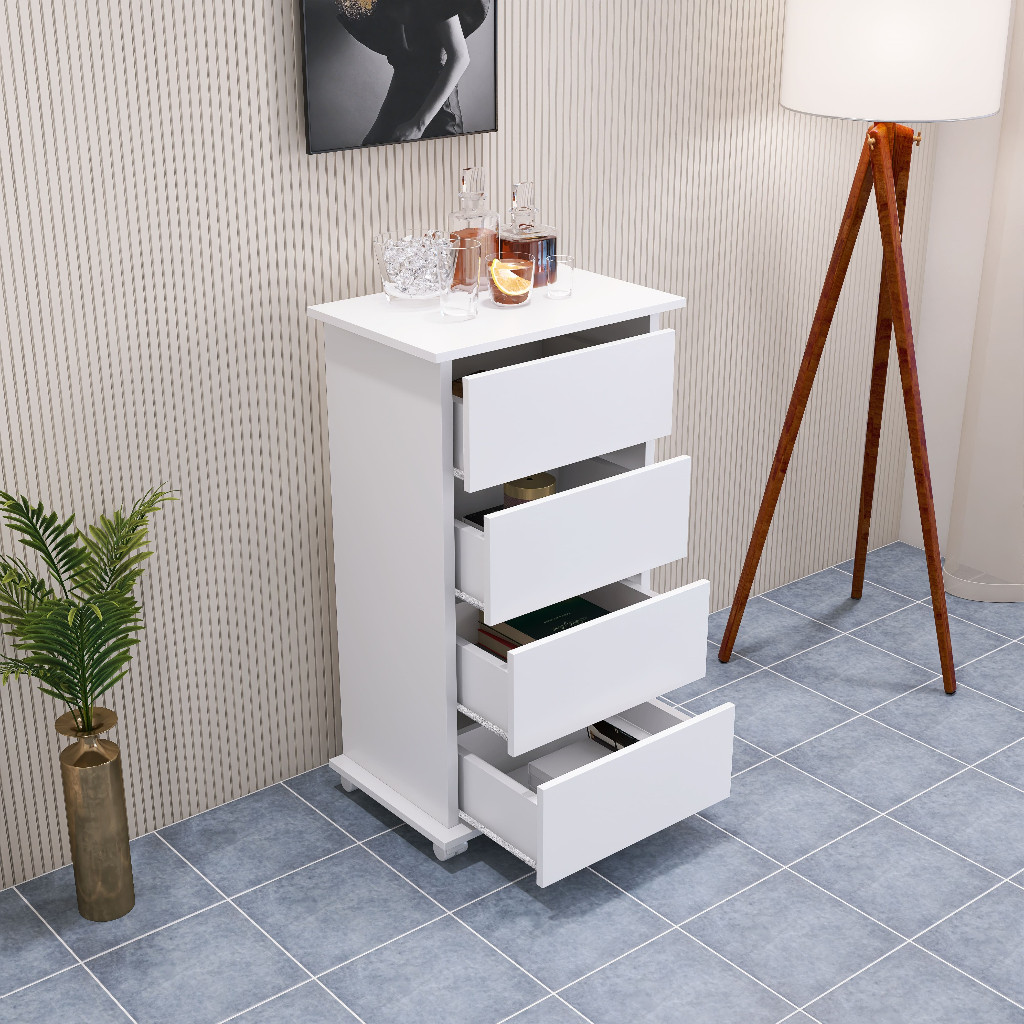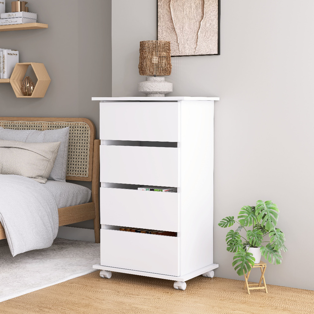 Carrinho Auxiliar Gaveteiro Criado 4 Gavetas Cores Branco/Preto