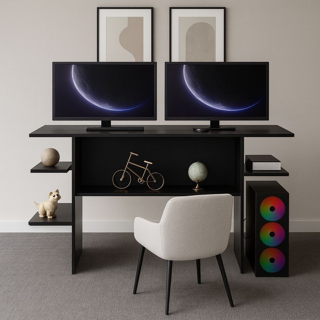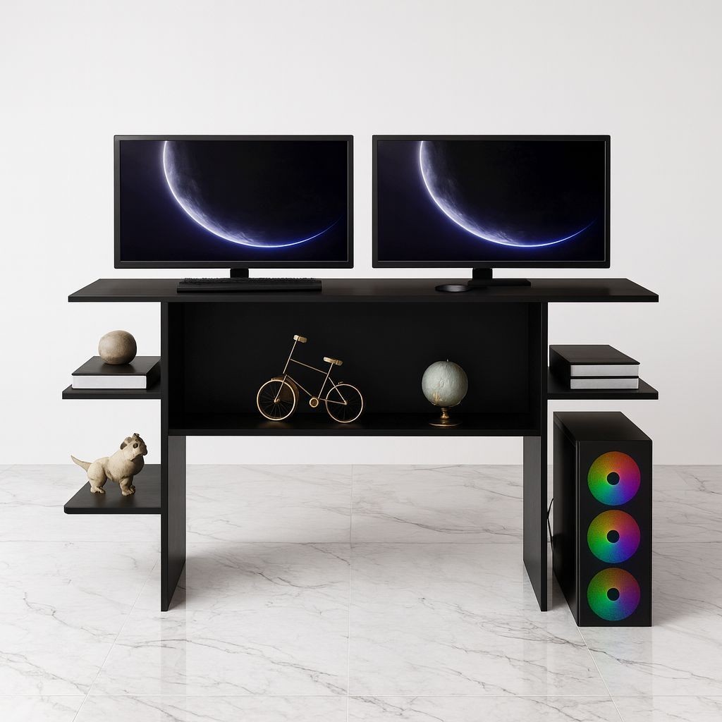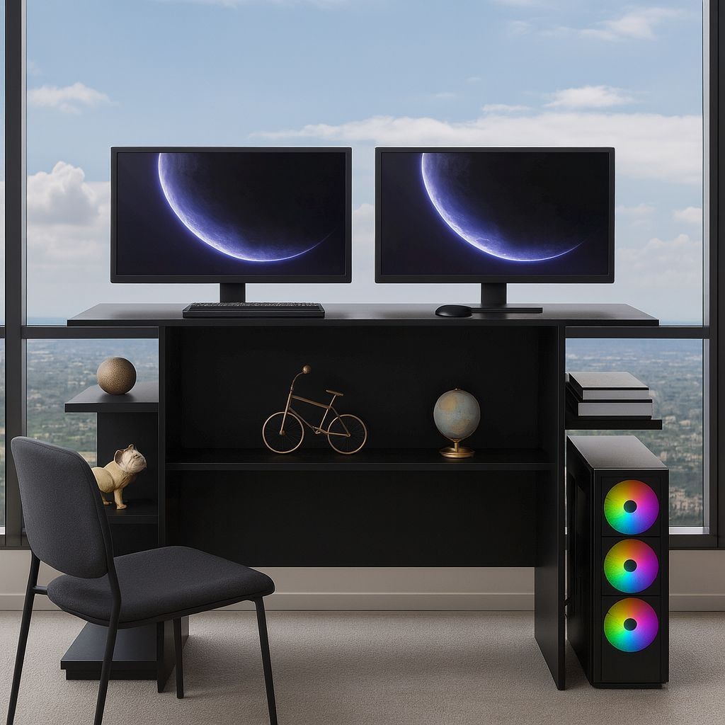 Escrivaninha Gamer p/ Computador com Nichos – Ideal para Quarto, Estudo e Escritório - Cor Preto
