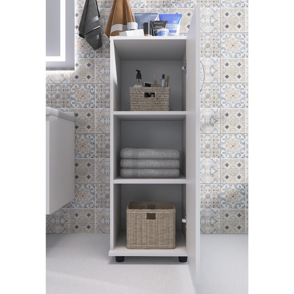 Armário Organizador Área de Serviço Multiuso Com Pezinho 1 Porta com Prateleiras Para Quarto