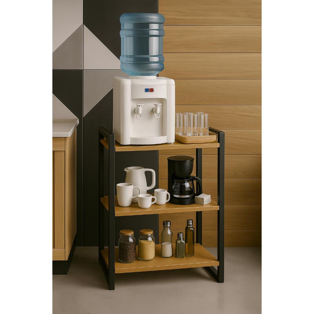 Aparador para Bar ou Cantinho Café com 3 Prateleiras - em Madeira MDP e Metalon em Estilo Industrial