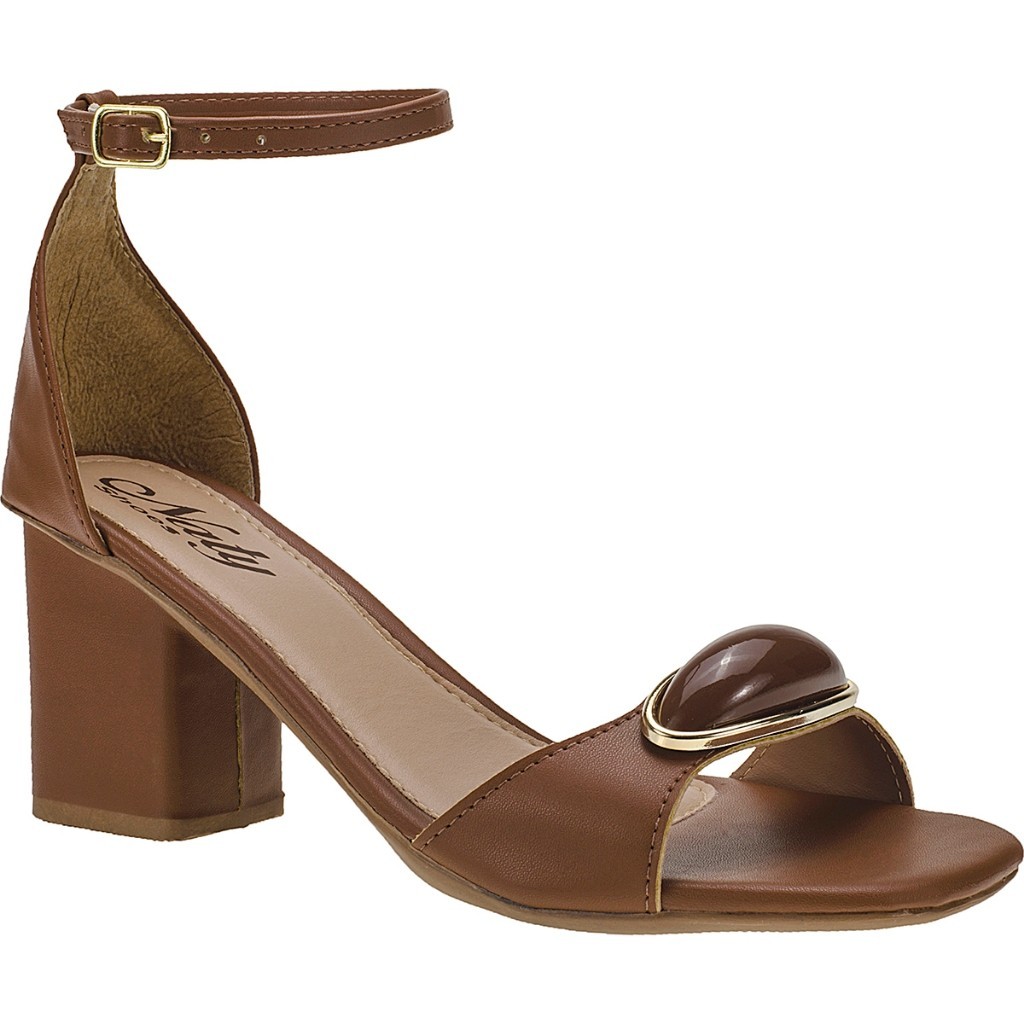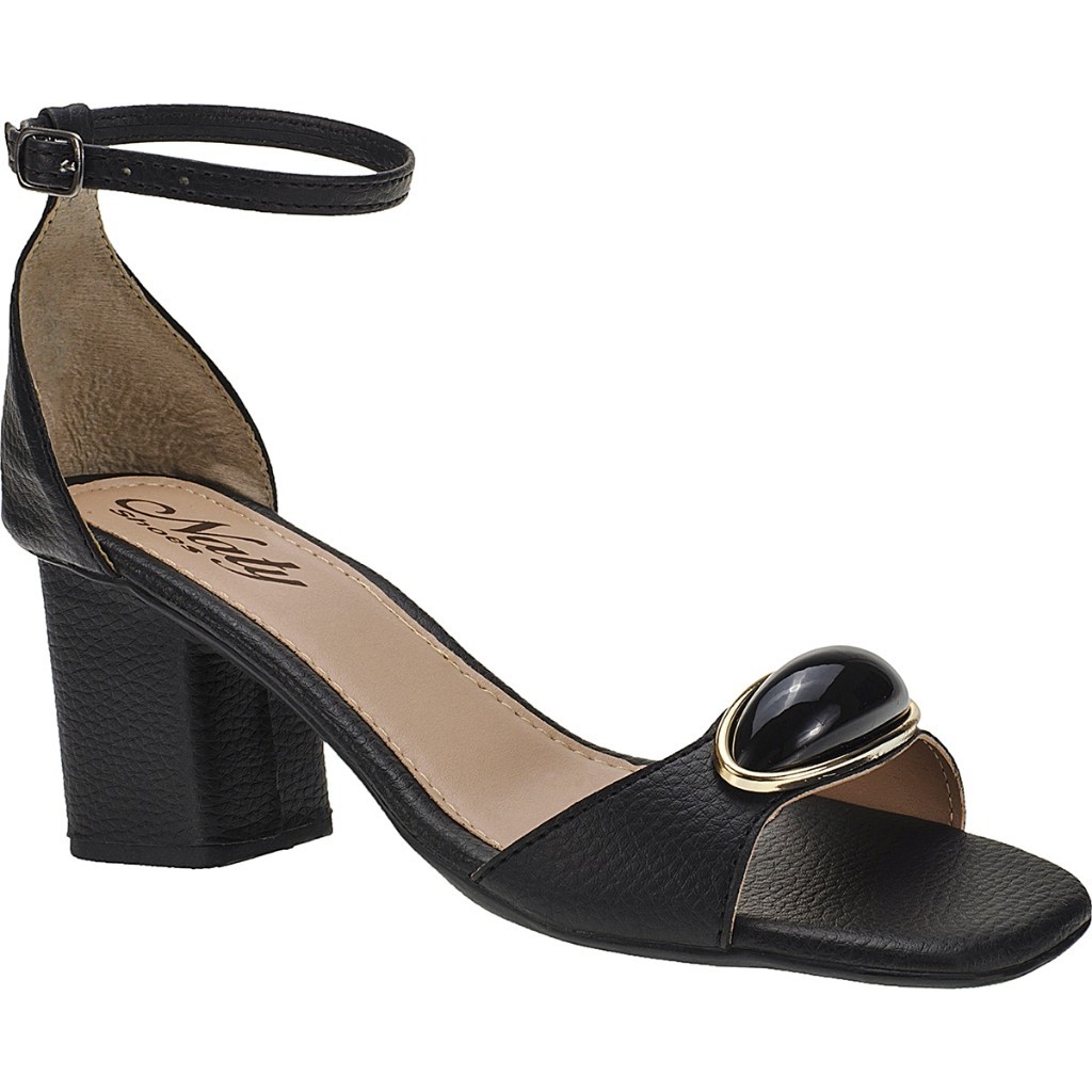 Sandália Feminina Nude Salto Alto Grosso com Enfeite ABS Gota Traseiro Fechado com Fivela Naty Shoes