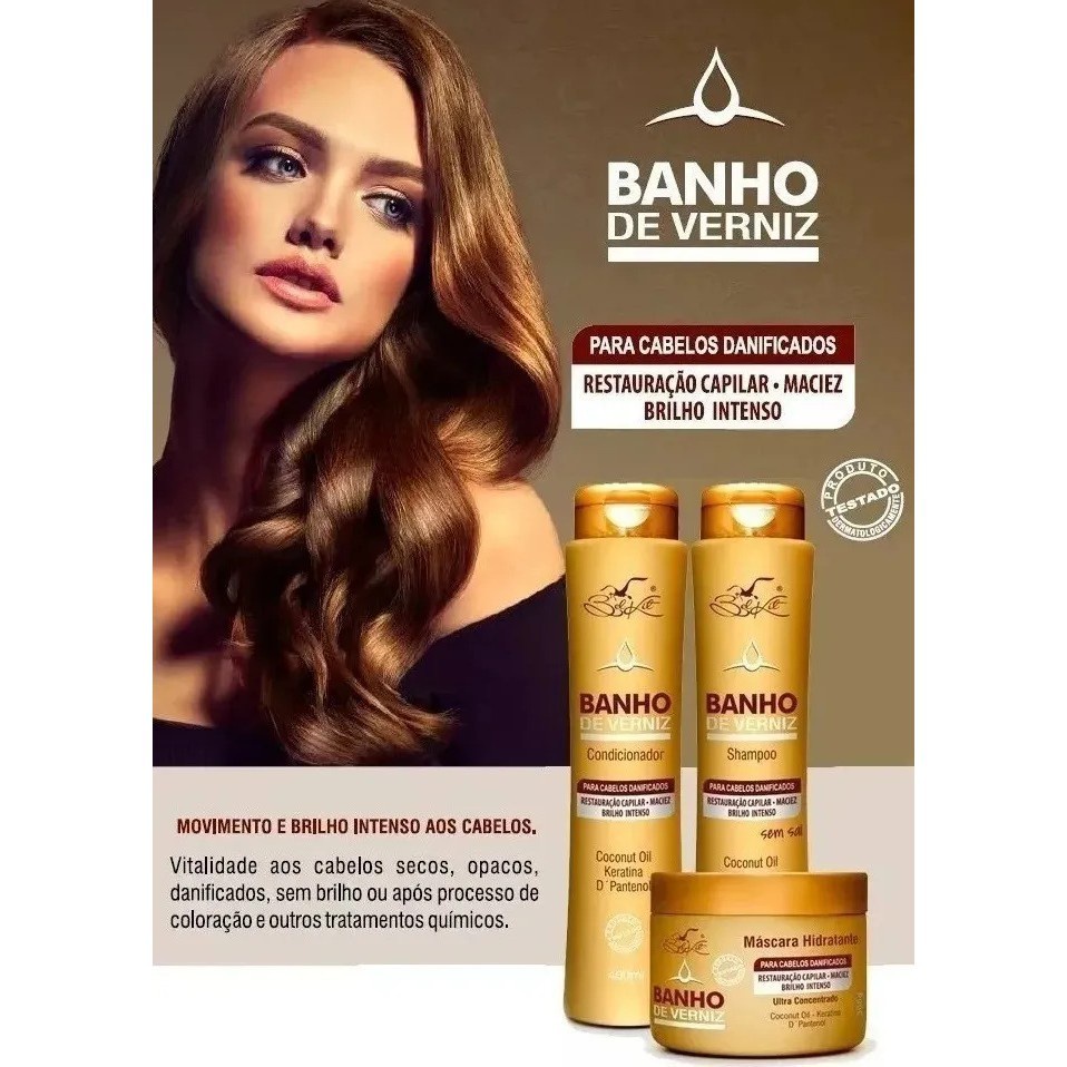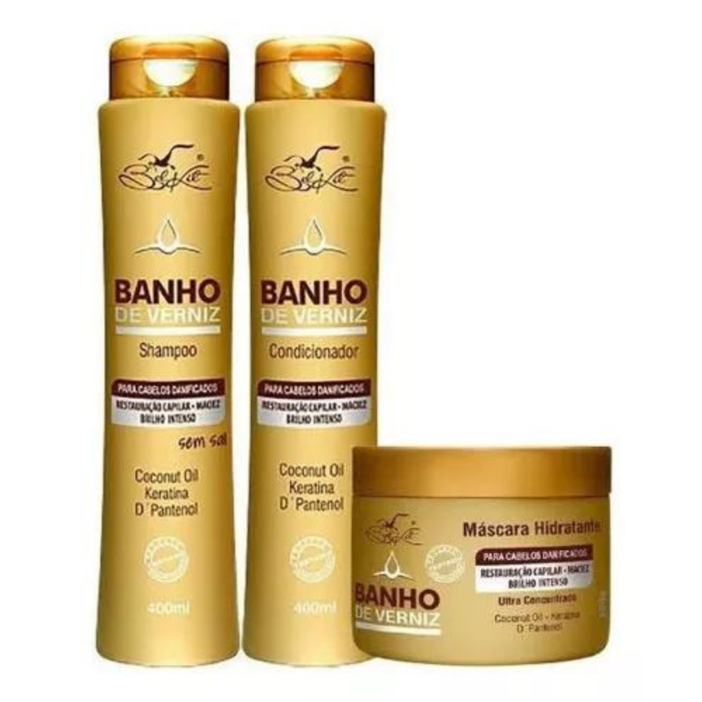 Kit Tratamento Capilar Banho de Verniz Belkit (Shampoo, Condicionador, Máscara e Creme de Pentear)