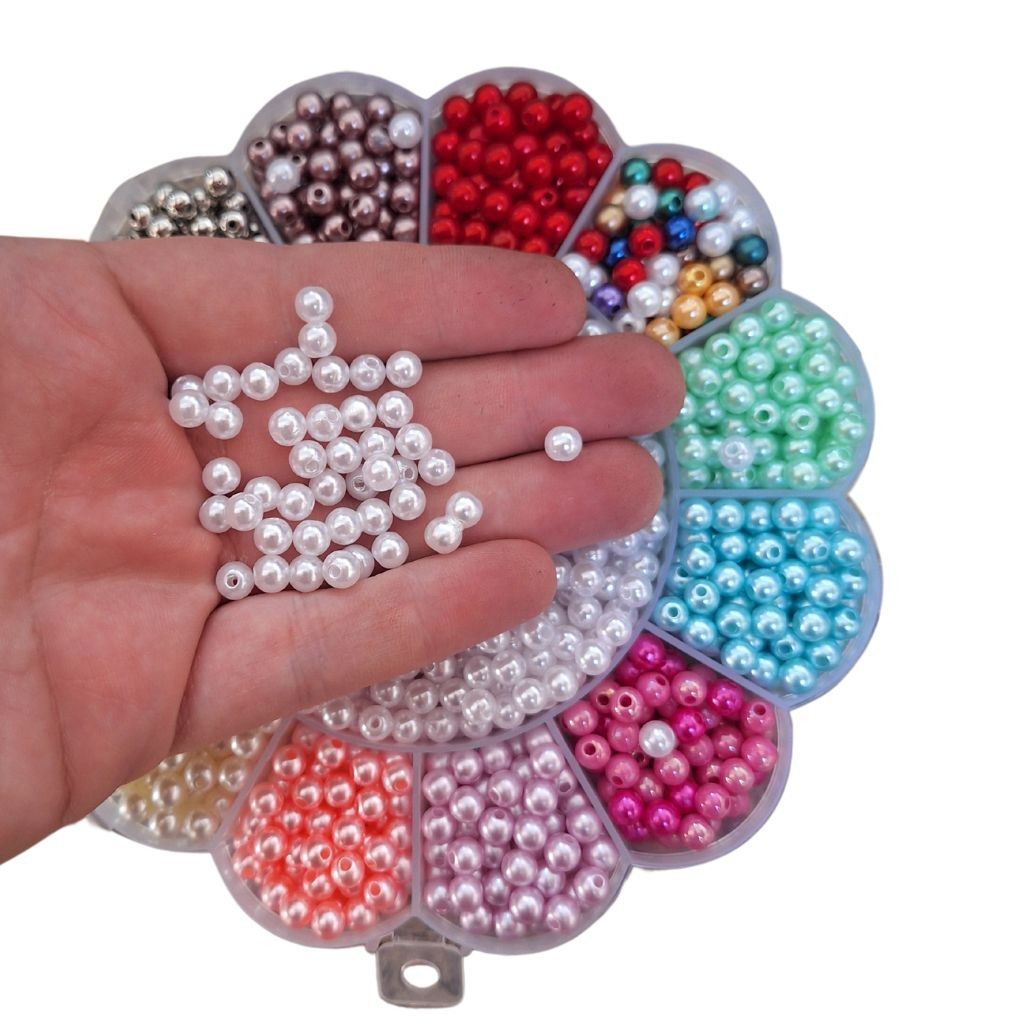 Kit Maleta com aproximadamente 1200 Pérola 6mm Coloridas 100% Abs PRIMEIRA LINHA Artesanato Furo Passante Premium
