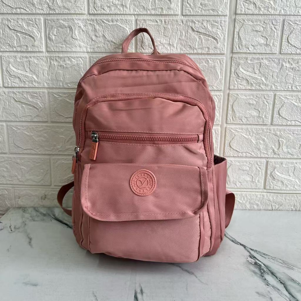 Mochila Casual Moda Nylon Pano Escolar Feminina Leve Cor Sólida Simples Viagem Média