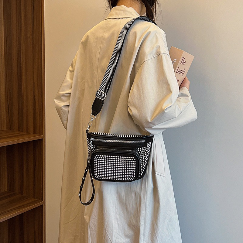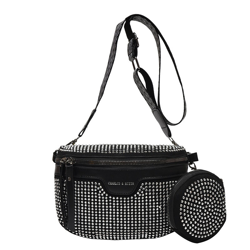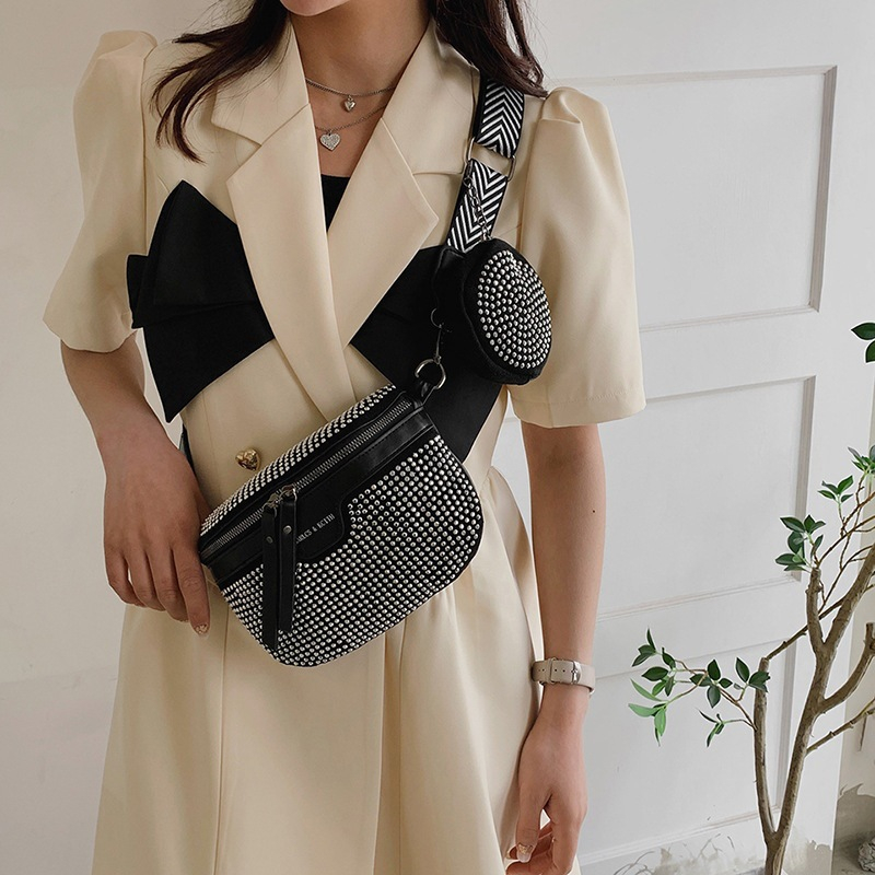 Saco De Cintura Diamante Brilhante Da Moda Casual Viagem Senhoras Peito Tendência Duas Peças