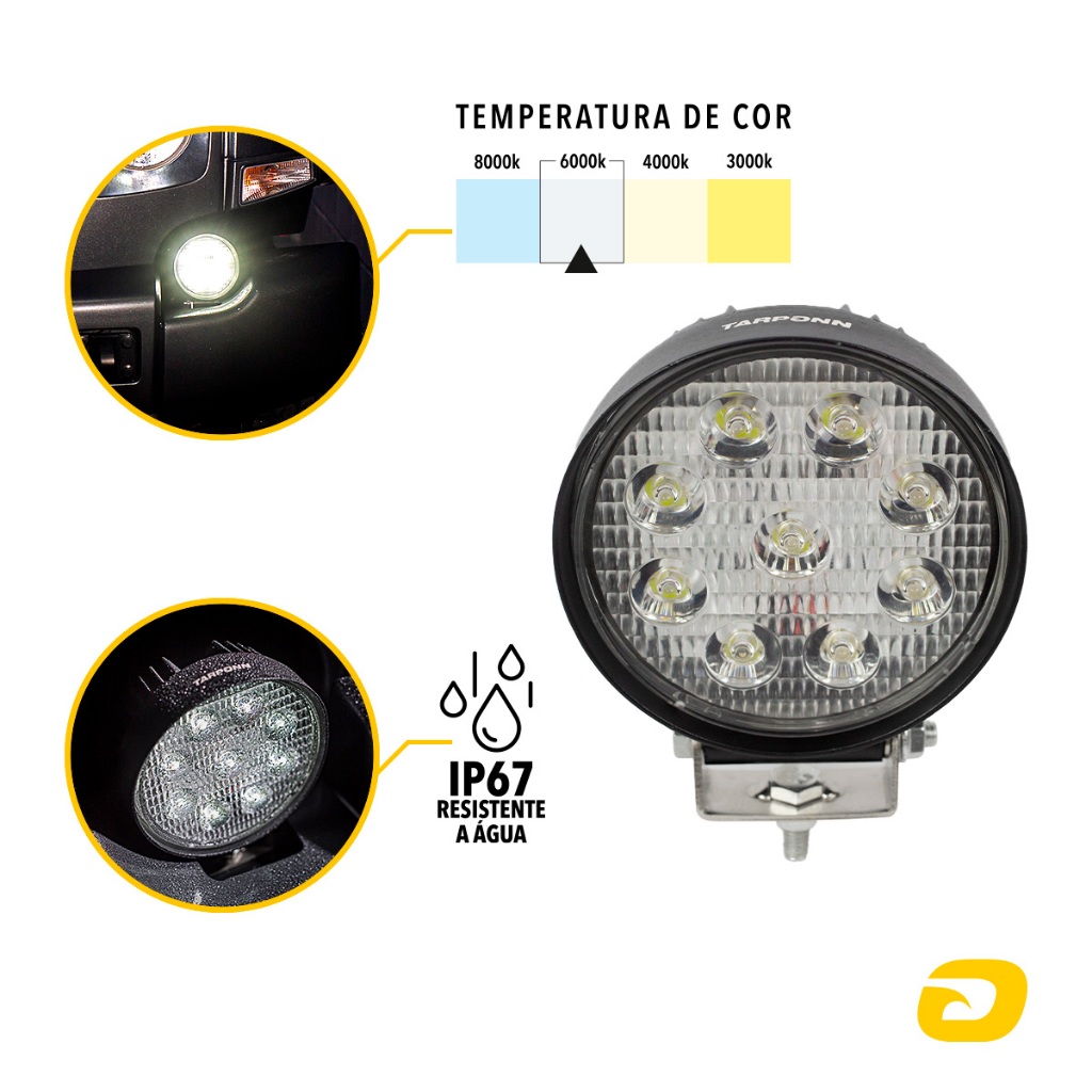 Farol De Milha Redondo 9 Leds 27w 9v/60v Off Road Troller Jeep