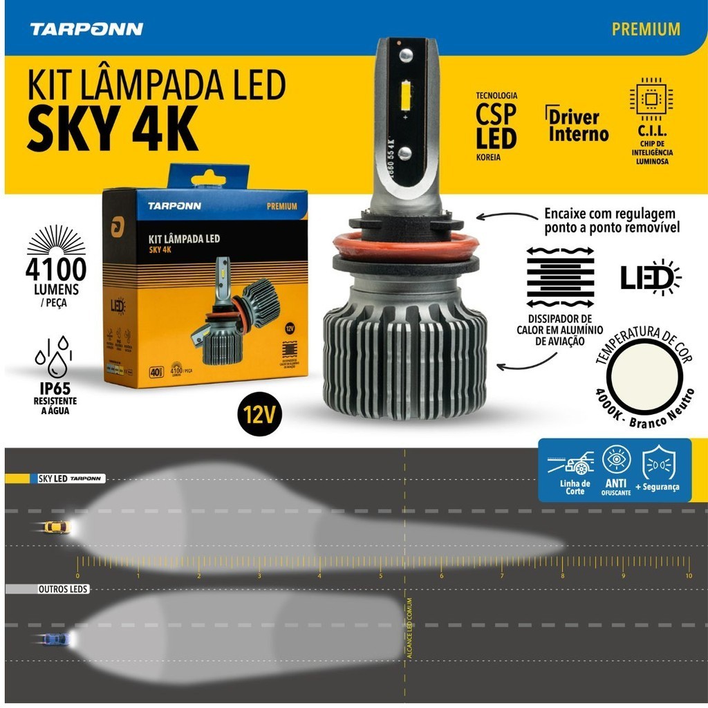 Kit Lâmpada Led Sky para carro H3 4000K 8200 LM Premium 80W 12V