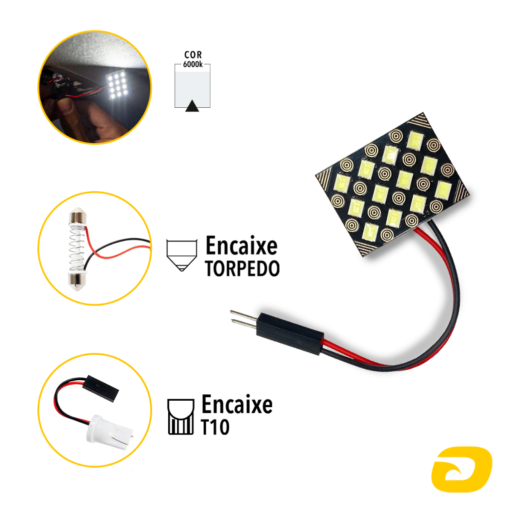 Lâmpada Led Placa F-3528-12smd 2 conectores 12V 6000k