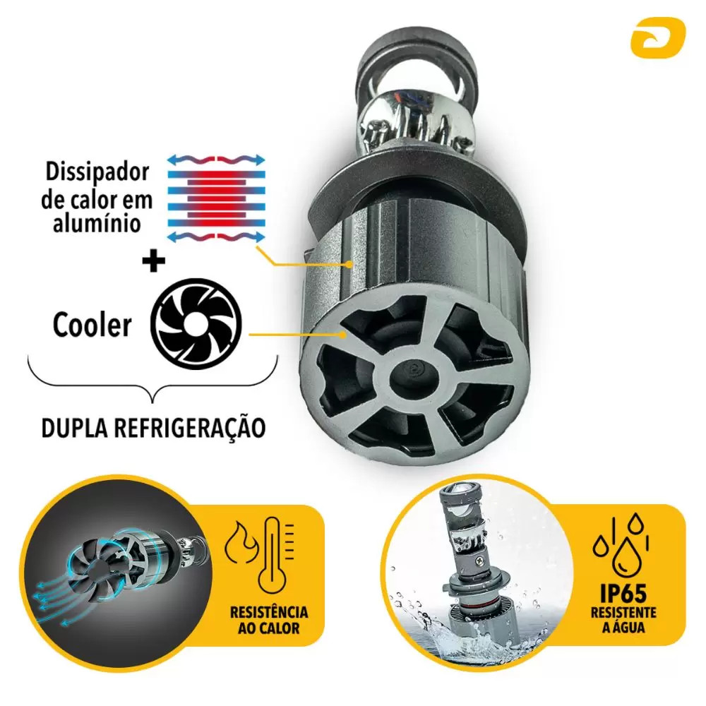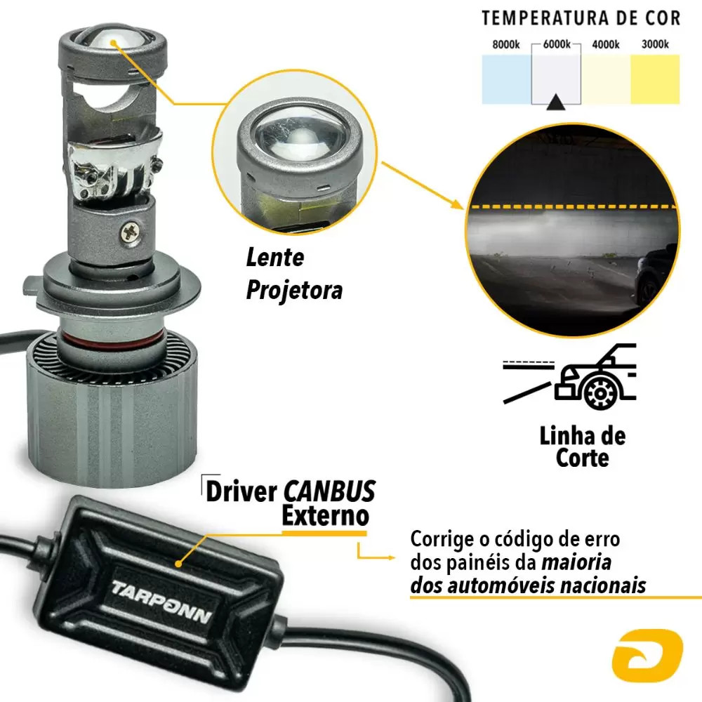 Kit Ultra Led Projetor H7/H8/H9/H11/H16/HB3/HB4 Canhão Forte