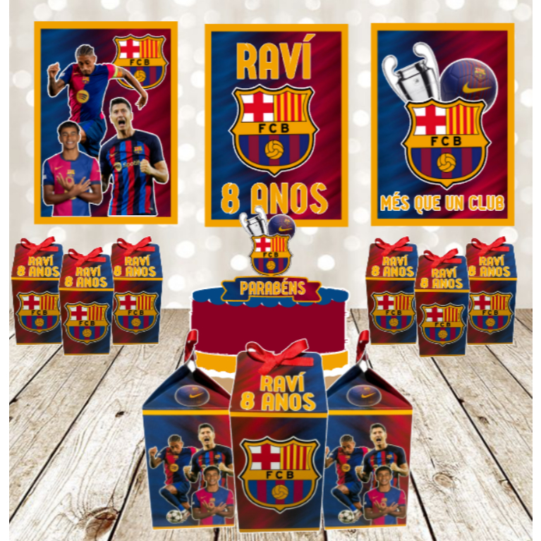 🎉 Kit Festa BARCELONA– Painéis + Caixas Milk Personalizadas + topo de bolo+BANDEIROLA- SÓ UM BOLINHO-FUTEBOL🎉