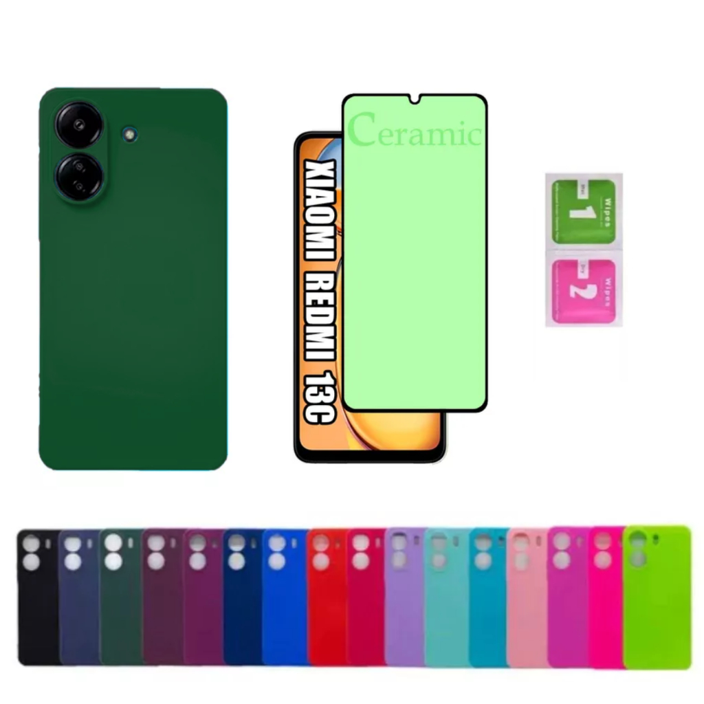 Kit Para Xiaomi Redmi 13C - Película Cerâmica + Capa Aveludada Colorida Capinha