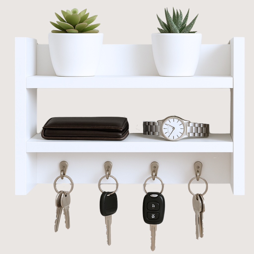 Nicho Porta Chaves de Parede 3 em 1 de Parede Porta Objetos Decorativo Branco MDF Multifuncional
