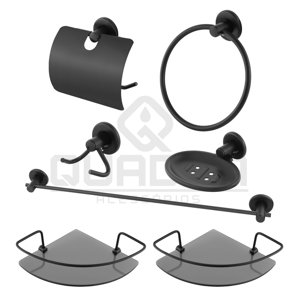 Kit para Banheiro 5 peças Stander Preto + 2 Porta Shampoo Canto