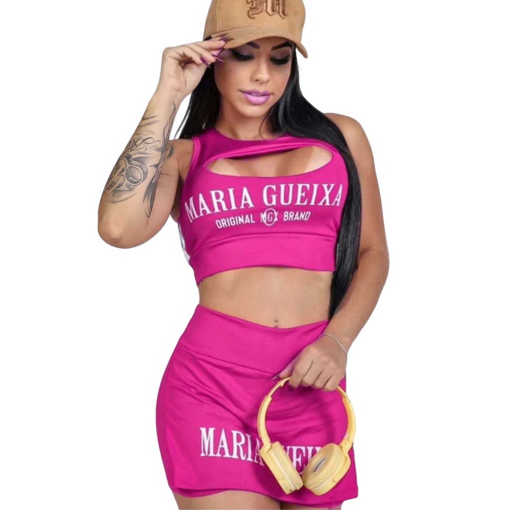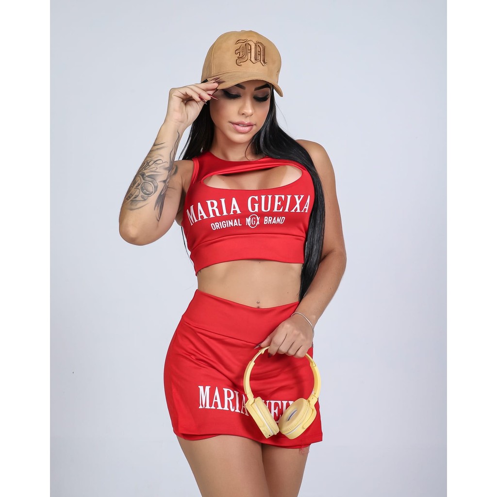 Conjunto Academia Feminino Maria Gueixa Short Com Saia Feminina Moda Fitness Blogueirinha