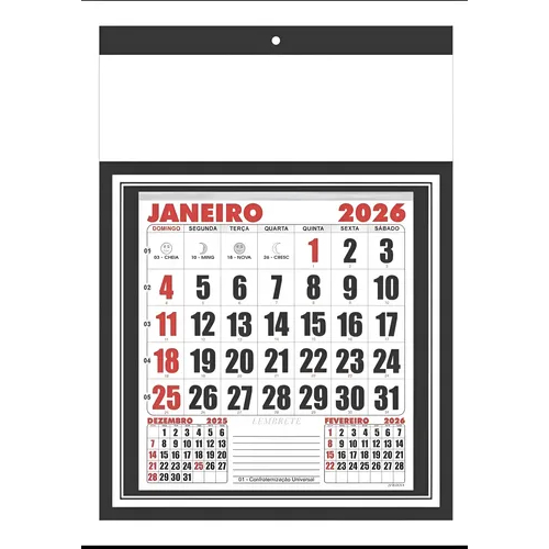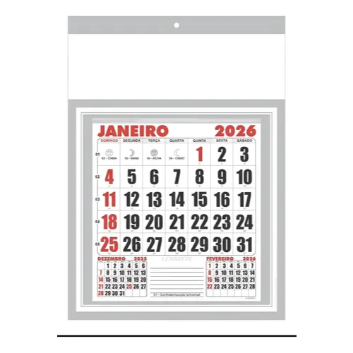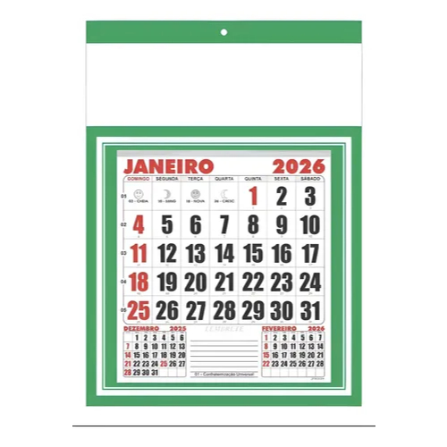1 Folhinha Calendário Comercial 27x37cm De Parede Lisa 2026