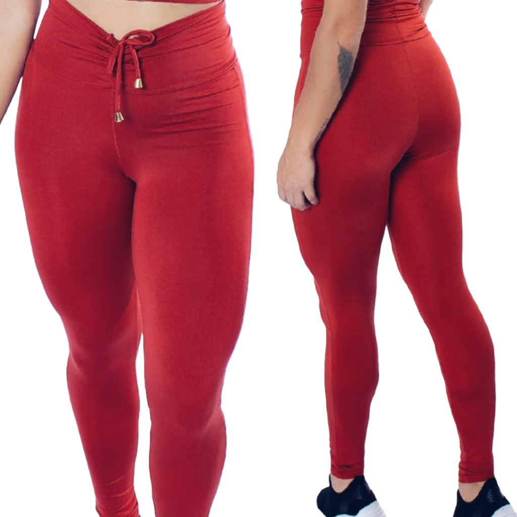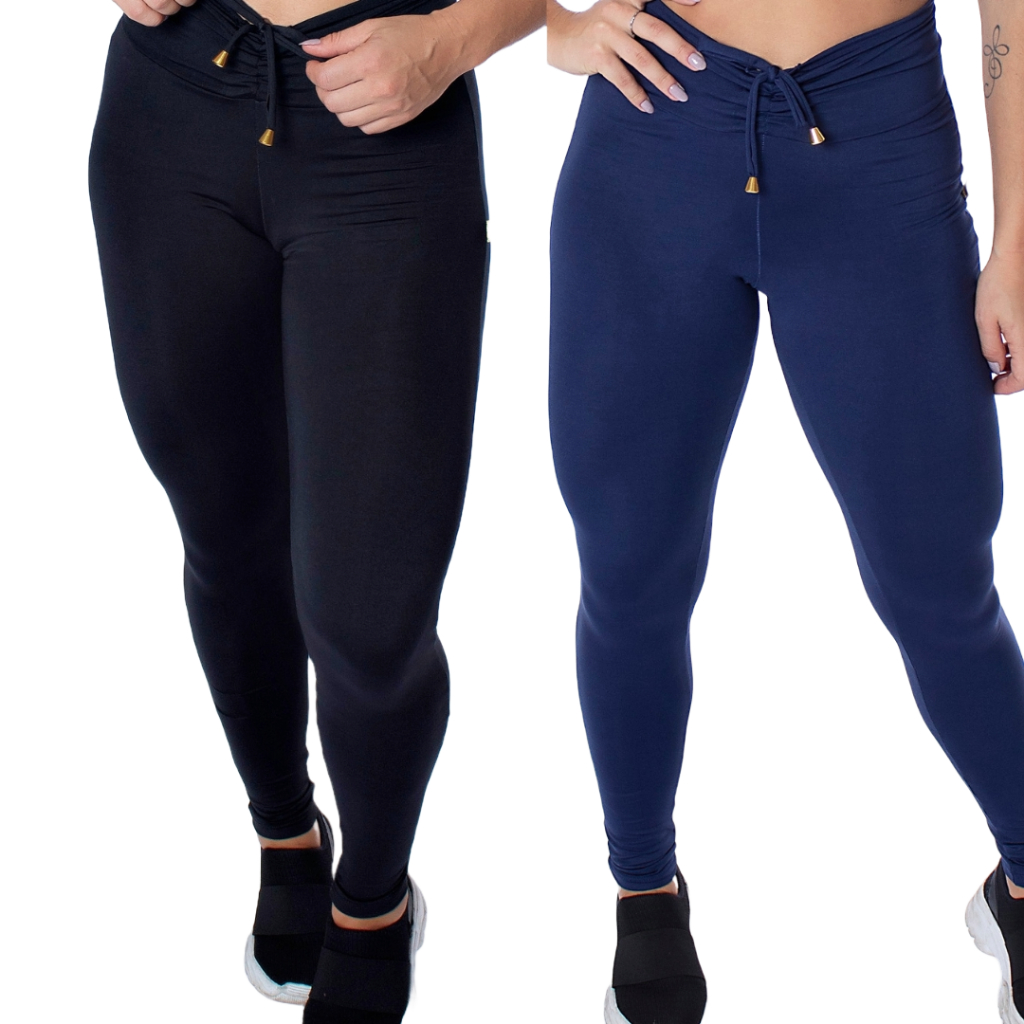 Kit com 2 Calças legging cintura alta de cadarço academia