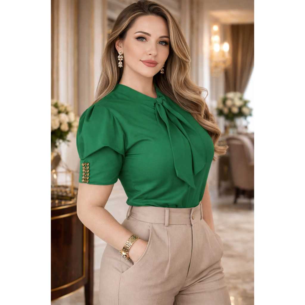 Blusa Feminina Social com Laço Manga Princesa Elegante Moda Evangélica Envio Imediato