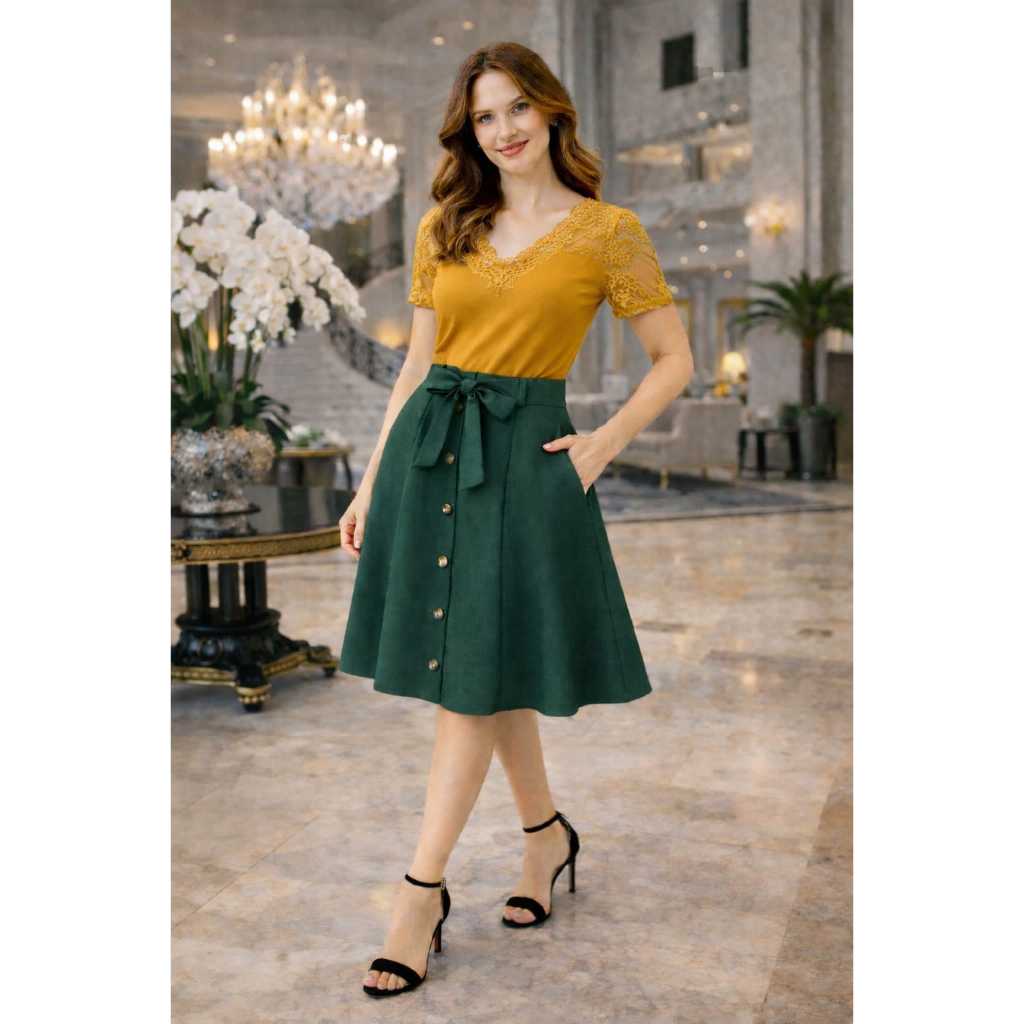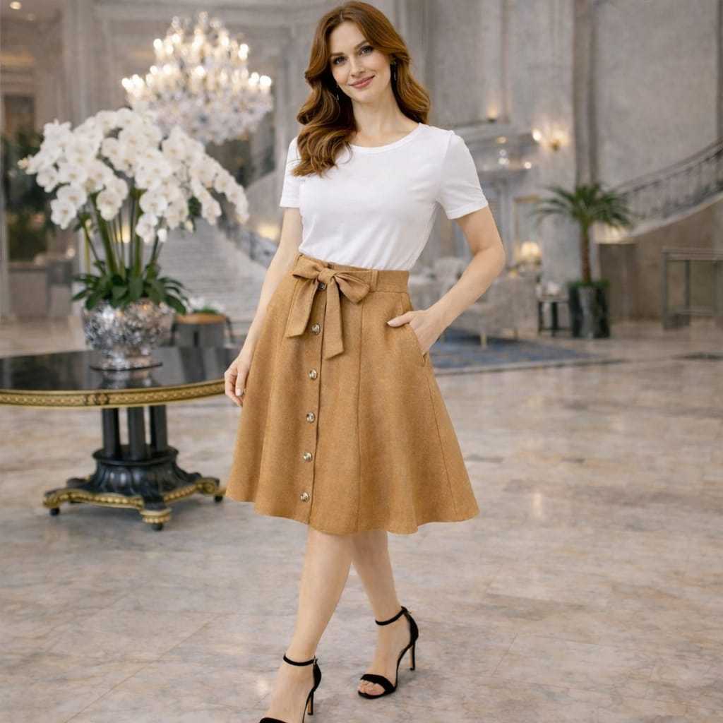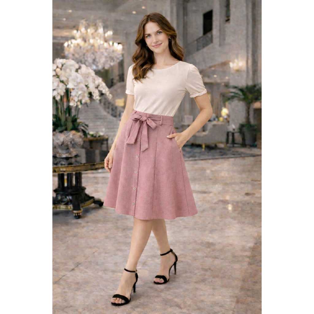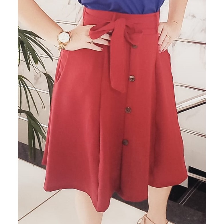 Saia Midi Cintura Alta Feminina – Elegante, Confortável, Envio Rápido. Saia forrada.