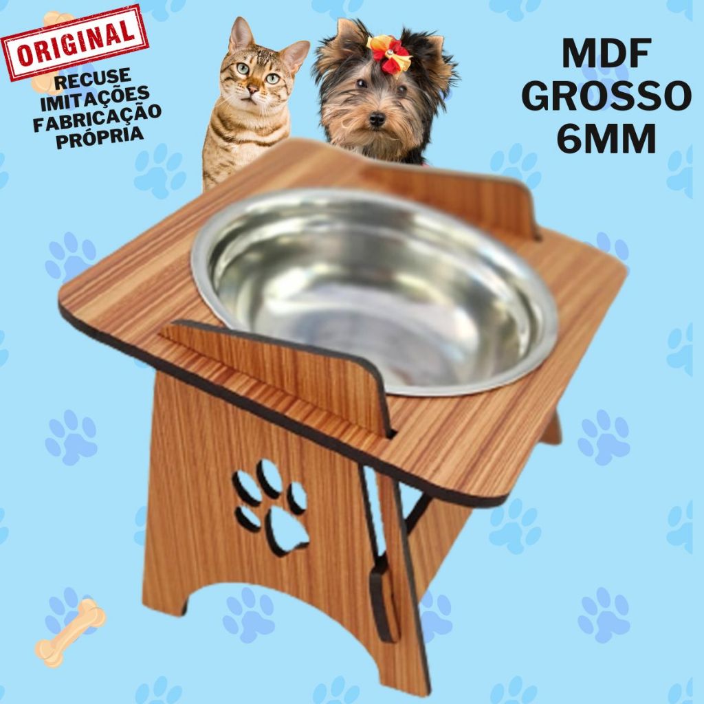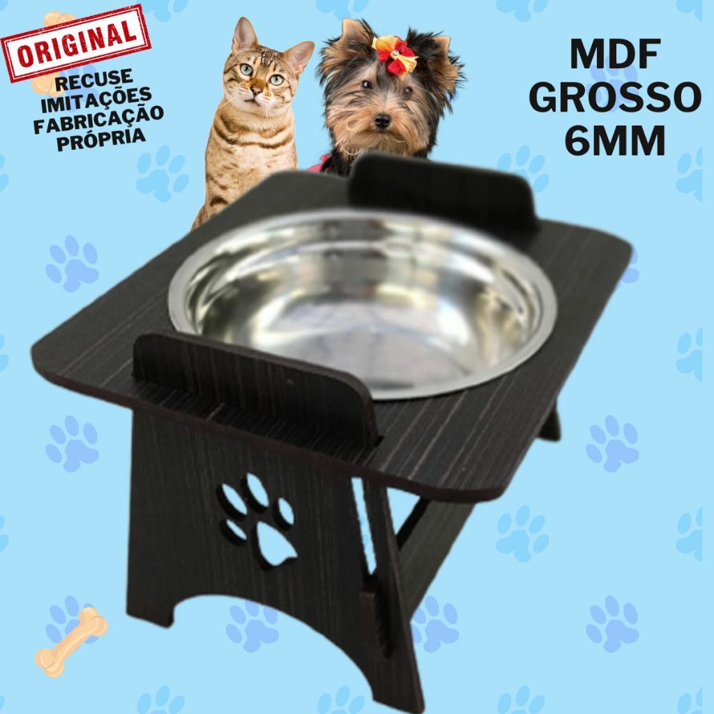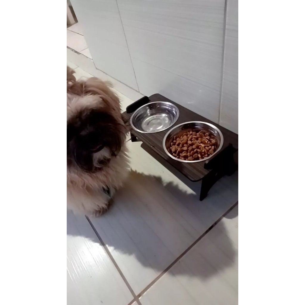 Comedouro Pet Elevado Com TAMPAS Gato E Cachorro com Tigelas Inox
