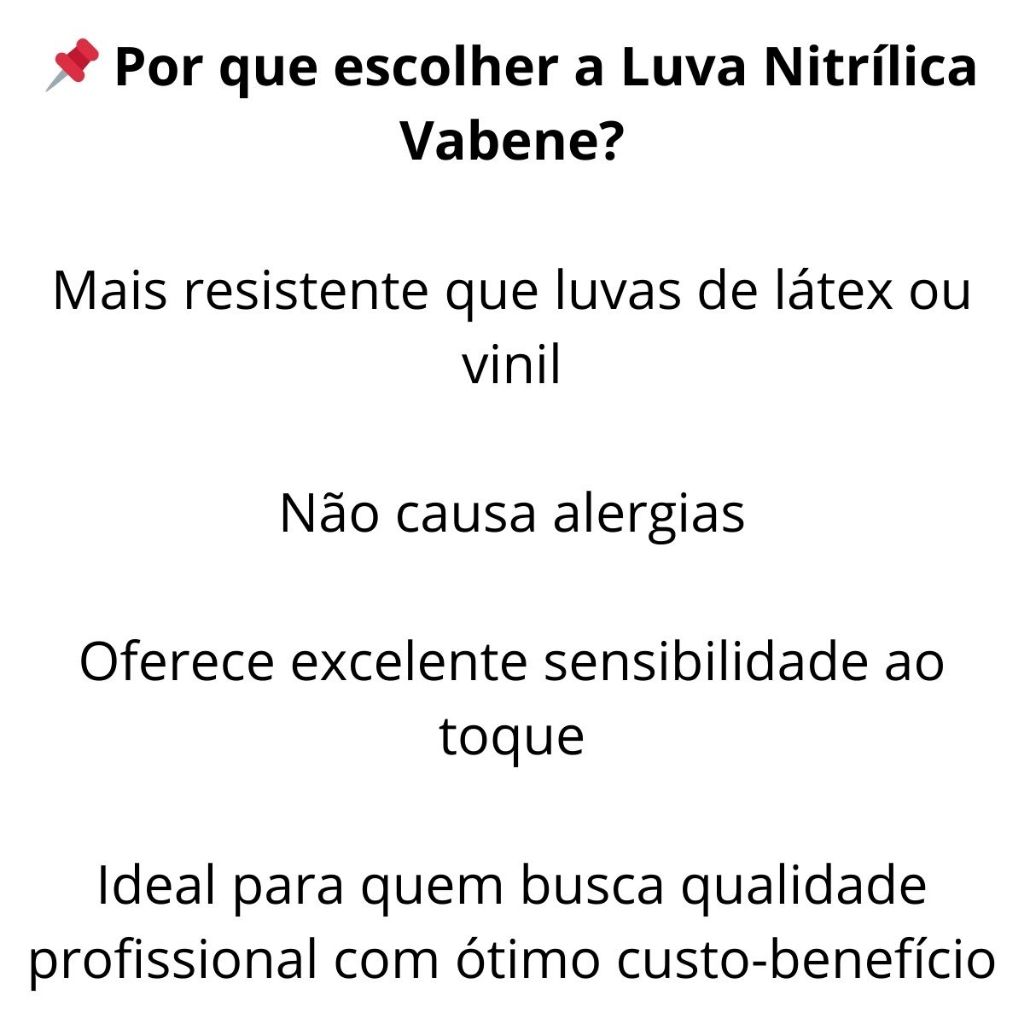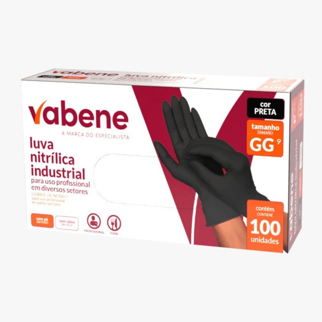 Luva Nitrílica Vabene Profissional 100 uni. Antiderrapante Descartável Sem Pó Tamanho P, M, G e GG