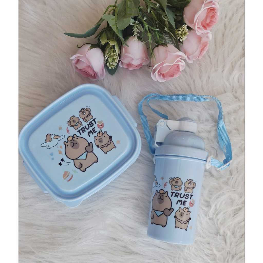 Lancheira Infantil com garfinho e garrafinha infantil com alça super delicada