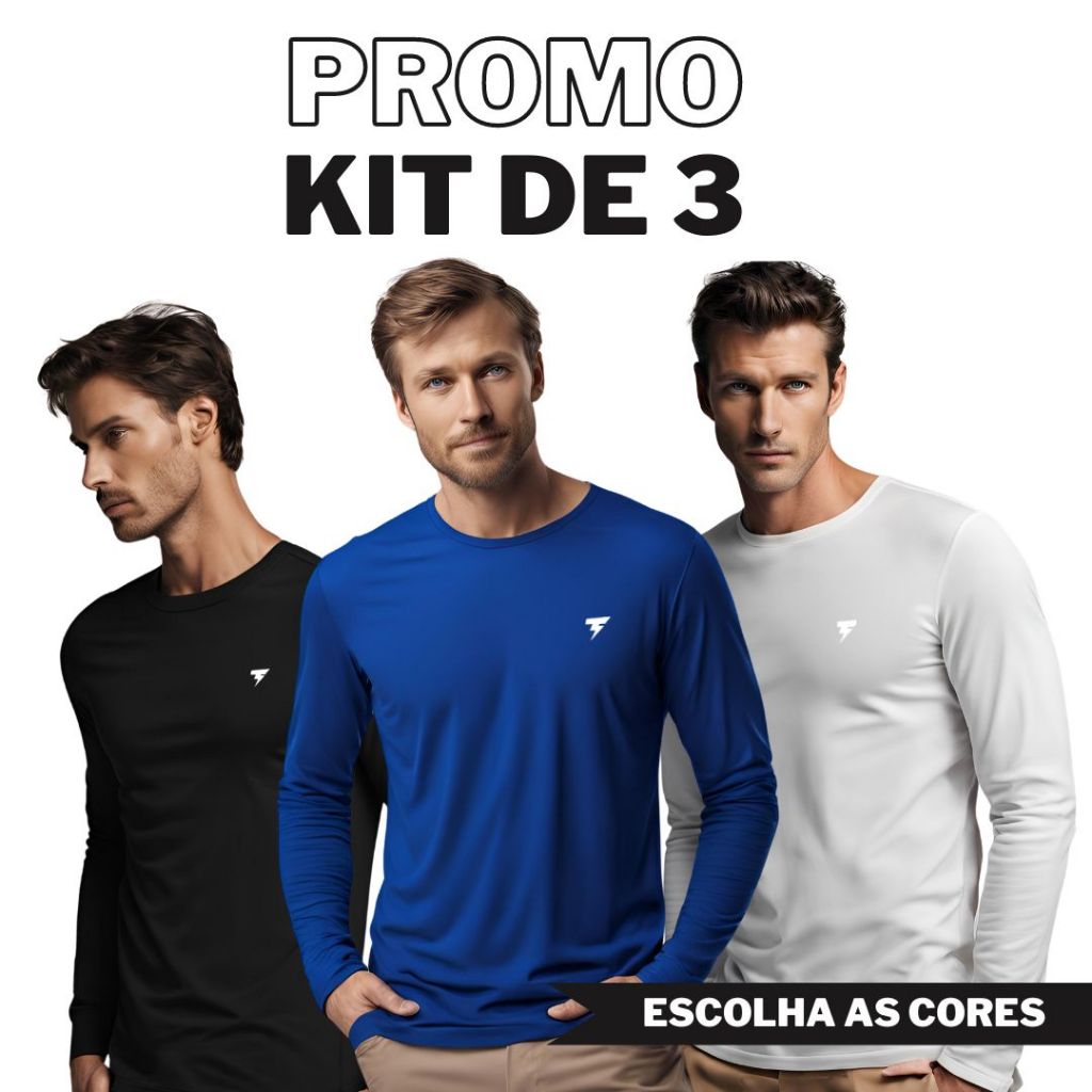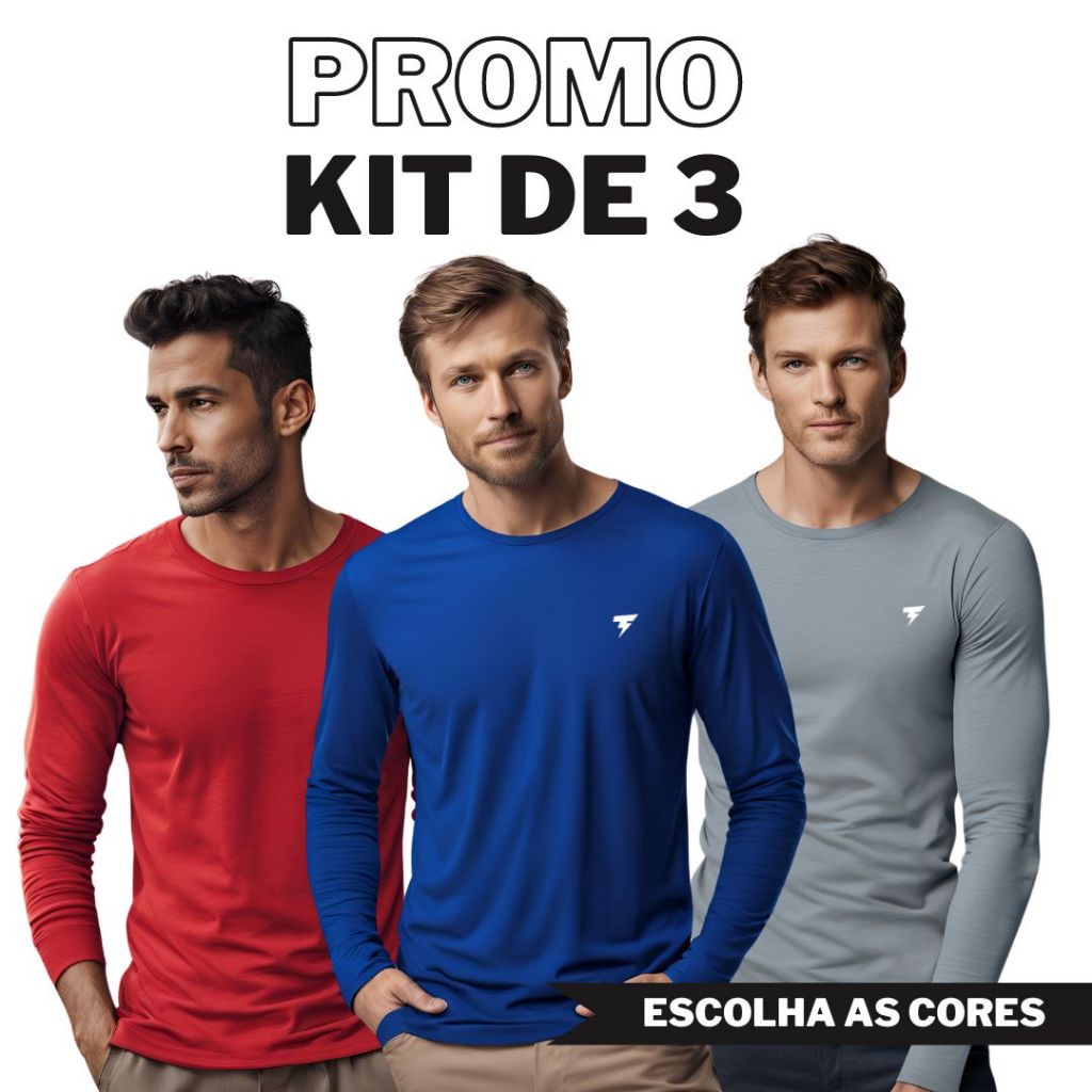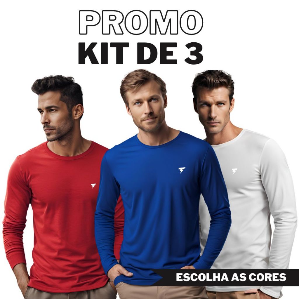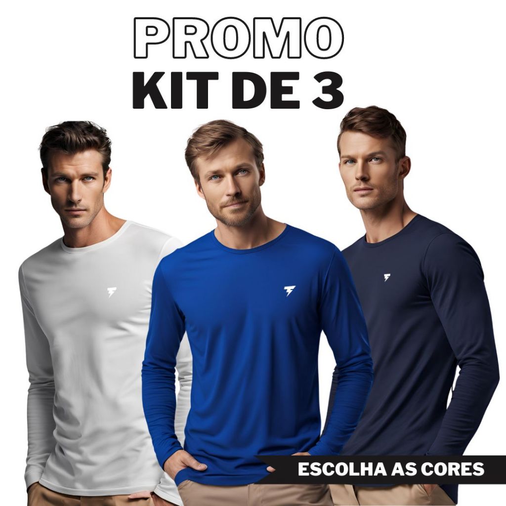 Kit 3 Camisas Segunda Pele com Proteção Uv+50 Unissex Esportes e Atividades ao Ar Livre