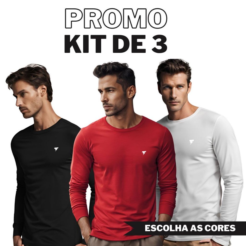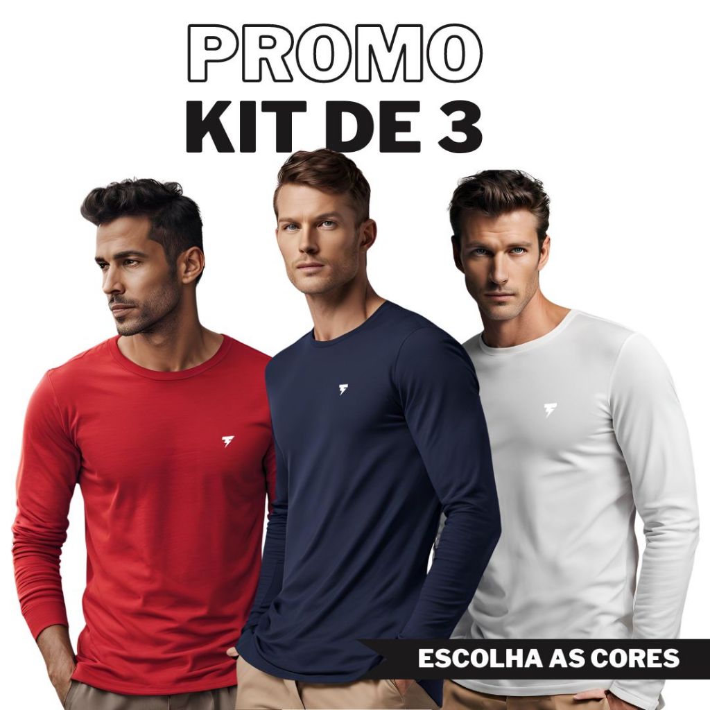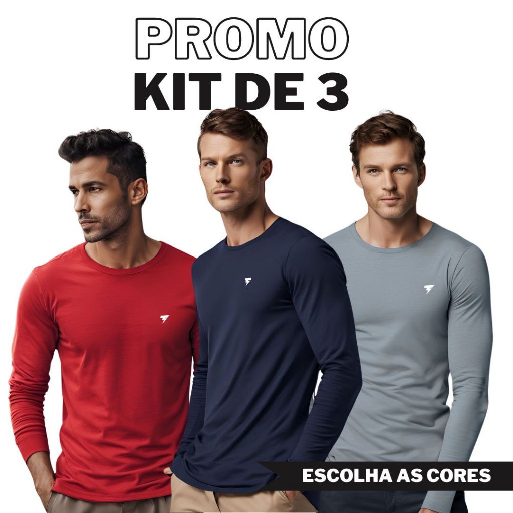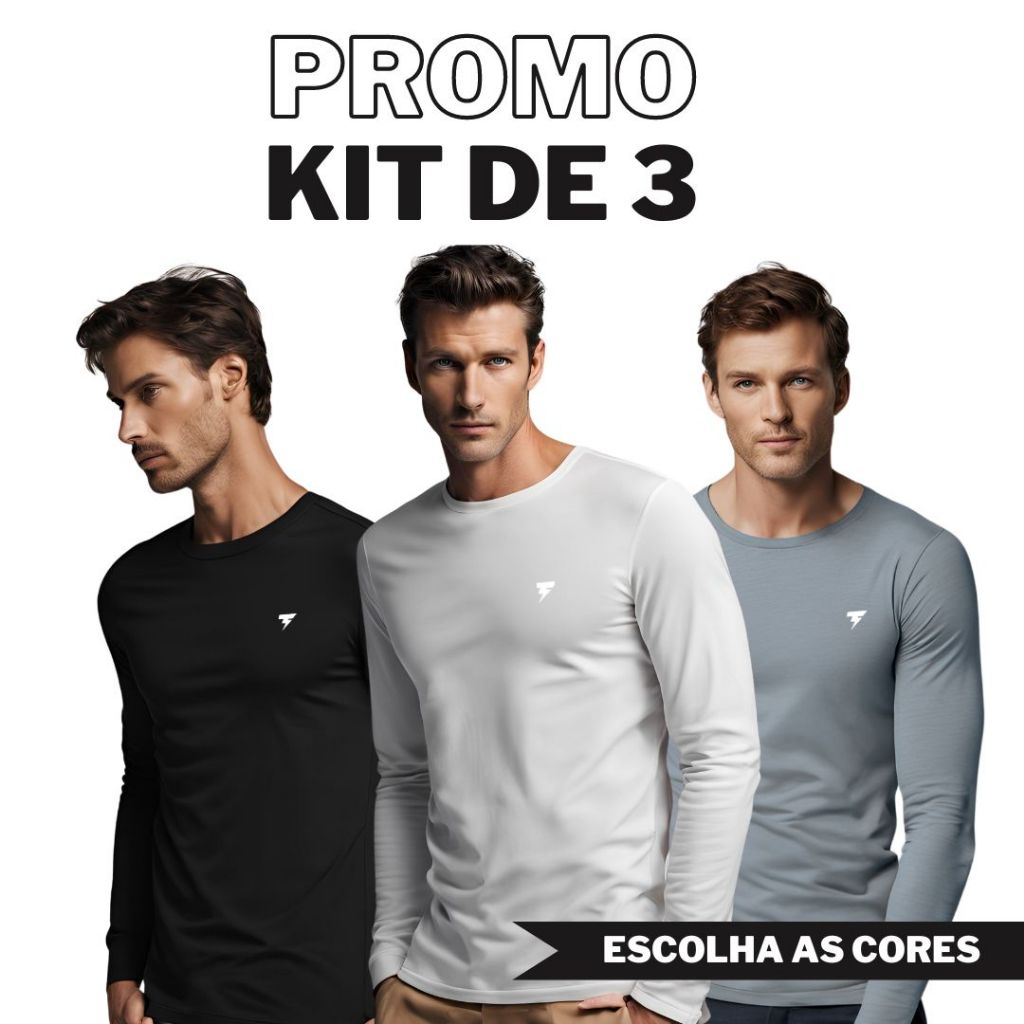 Kit 3 Camisas Segunda Pele com Proteção Uv+50 Unissex Esportes e Atividades ao Ar Livre