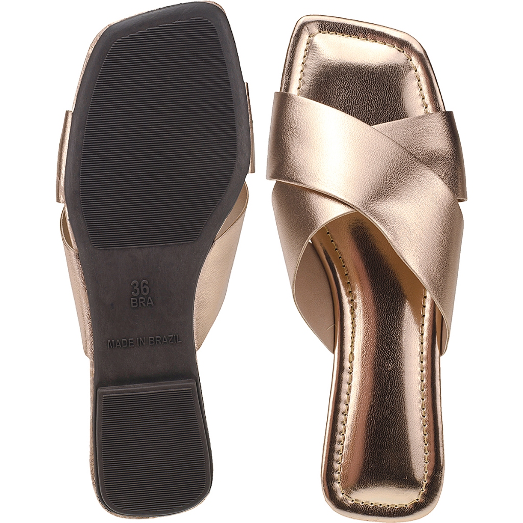 Rasteirinha Feminina Sandalia Feminina Rasteirinha Chinelo Feminino Slide Com Tiras Cruzadas Metalizadas